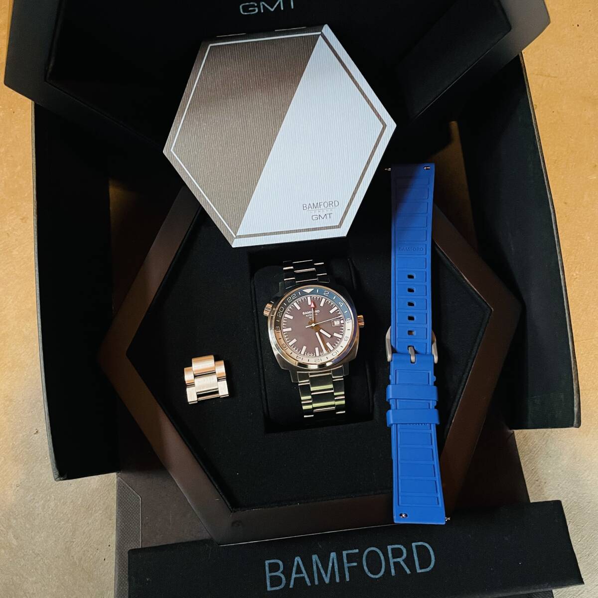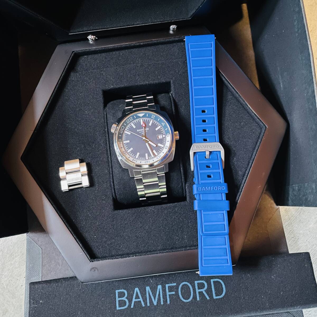 付属品:バンフォードのオプションラバーストラップ・ブレスのコマ(2個)・箱