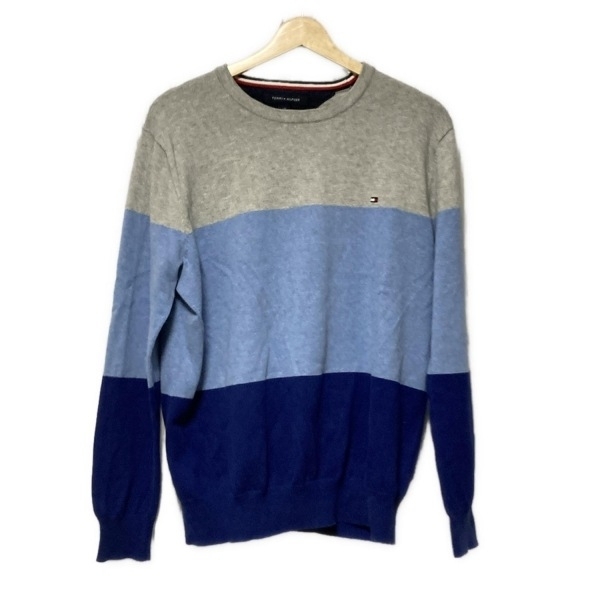トミーヒルフィガー TOMMY HILFIGER 長袖セーター/ニット サイズL - ライトブルー×ブルー×グレー メンズ クルーネック トップス