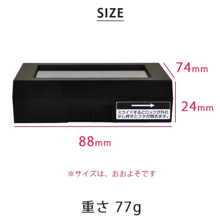| サイズ | 横 × 縦 × 厚み 約 88 × 74 × 24 mm 約 77 g |