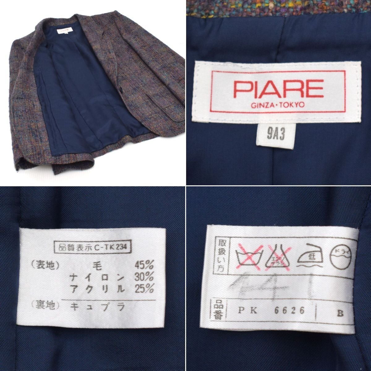 | piare スーツ セットアップ ウール ツイード ジャケット スカート |
