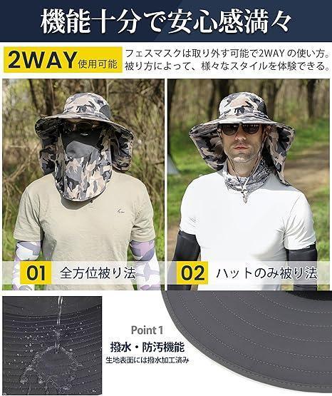 フェイスマスク付き2WAY仕様で、取り外してマスク代わりにも◎ 日焼け対策はこれひとつでOK!