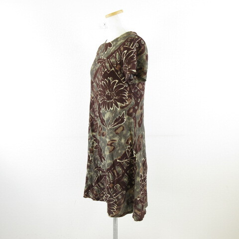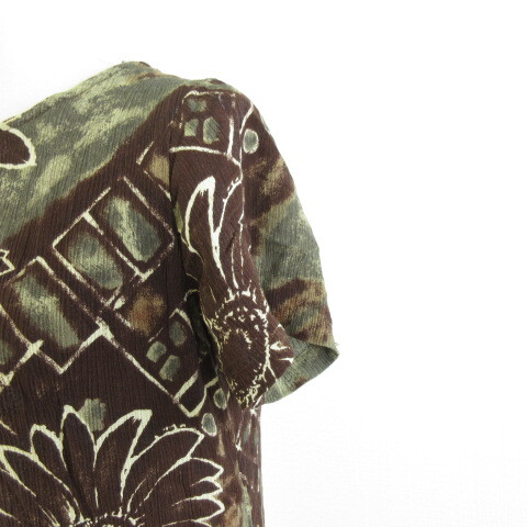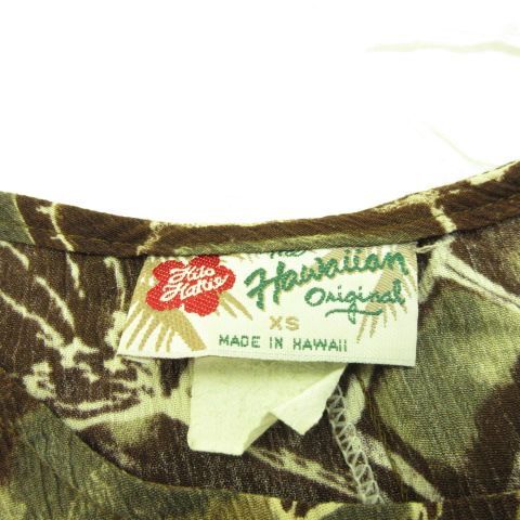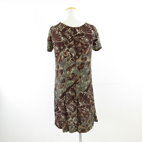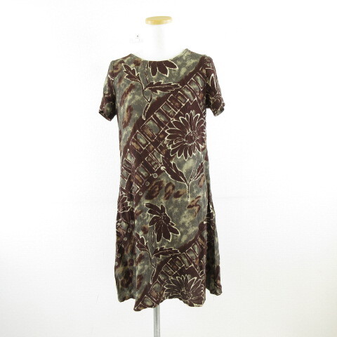 Hawaii ワンピース ミニ 半袖 花柄 茶 XS *A563 レディース