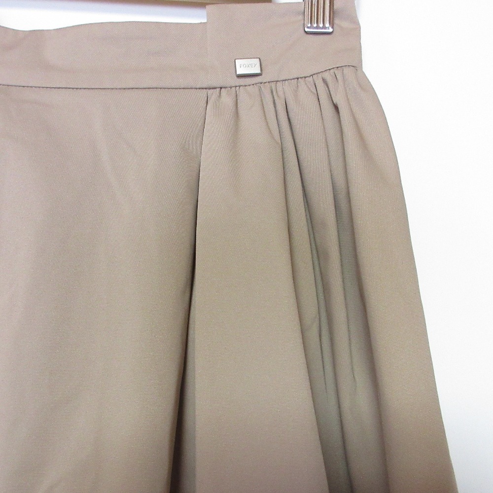 FOXEY NEW YORK フォクシーニューヨーク ストレッチ ひざ丈 バックギャザー スカート 38 ベージュ