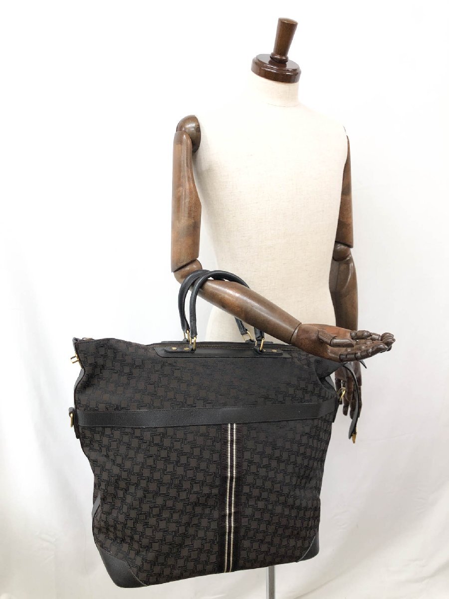 超美品【dunhill ダンヒル】ナイロンキャンバス×レザー ボストンバッグ トートバッグ ショルダーバッグ(メンズ)ダークブラウン○5SC0354◯