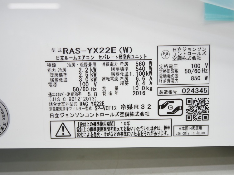 【未使用品】日立製/ルームエアコン/6畳用/室内機のみ/RAS-YX22E(W)(7051973)