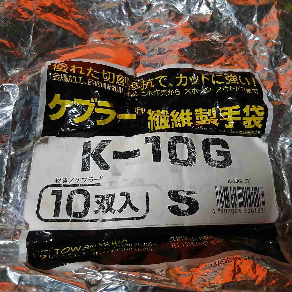 ◎トワロン ケブラーK-10G 10ゲージ(10双入) S K10GS 耐切創性 耐摩耗性 金属加工 自動車関連 建設土木業 作業用手袋