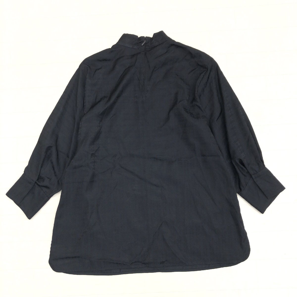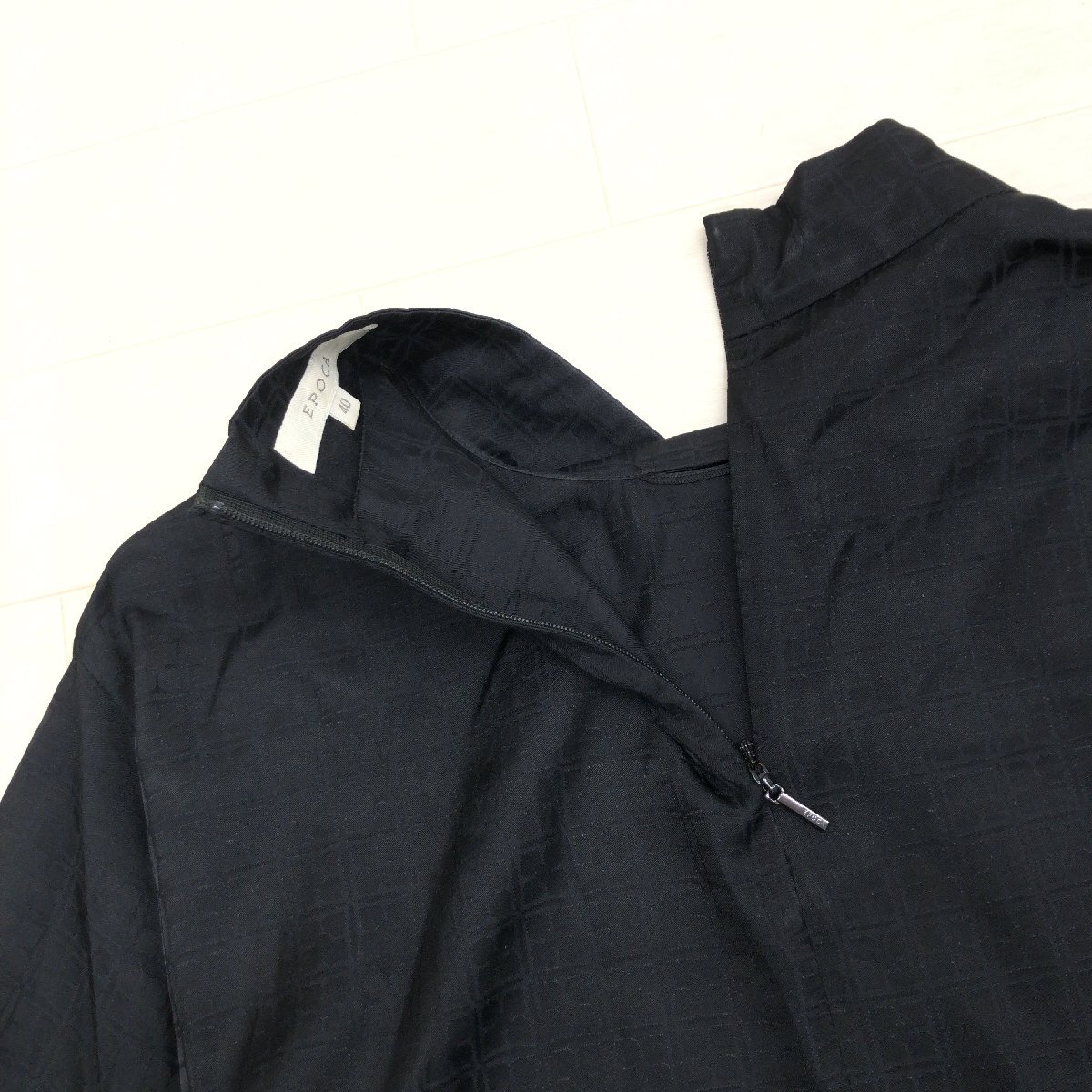 EPOCA エポカ ハイネック 総柄 サテン シャツ 40(L) 黒 ブラック 日本製 プルオーバー ブラウス カットソー 長袖 レディース 婦人