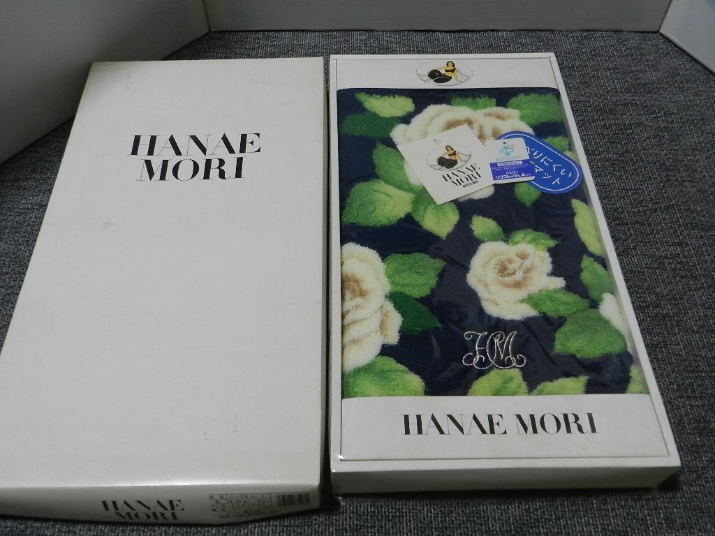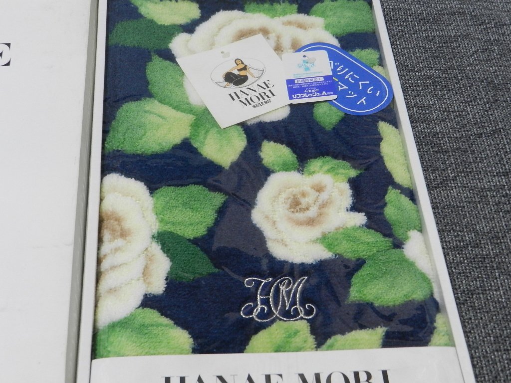 HANAEMORI 45cm×70㎝ バスマット ローズ&リーフ ダークブルー