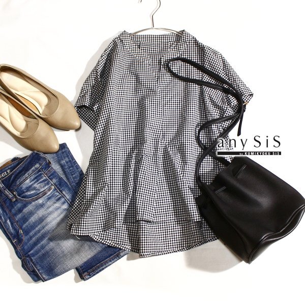 美品 any SiS エニィシィス 可愛いチェック柄 コットン カットソー 0号 春 夏 25A06