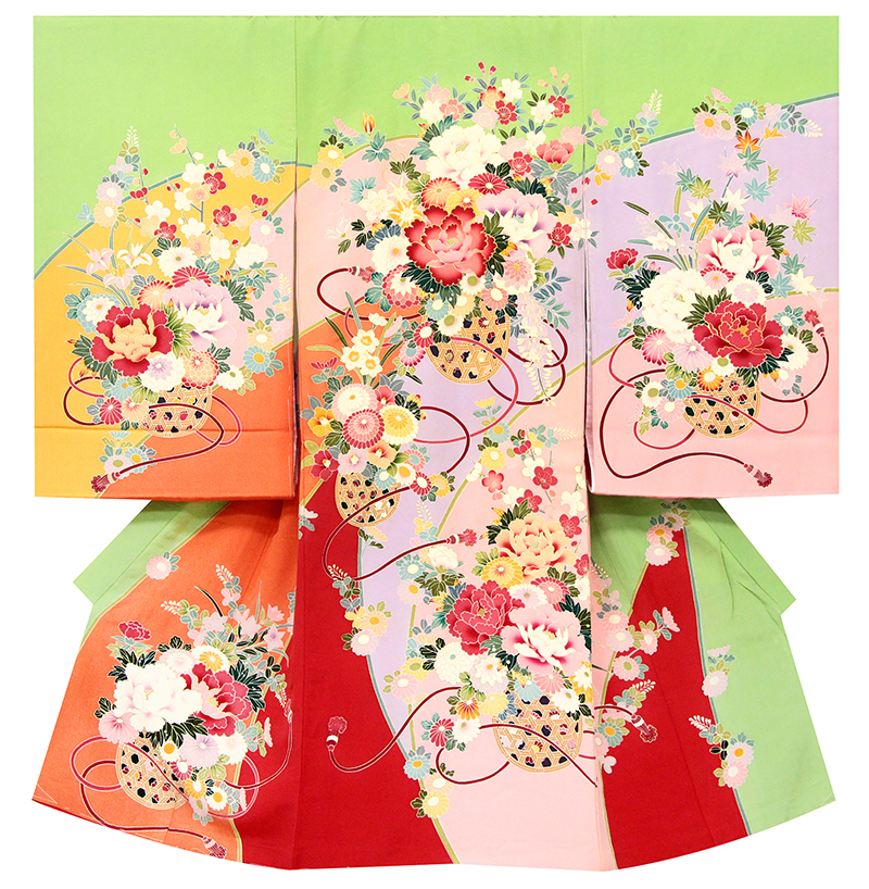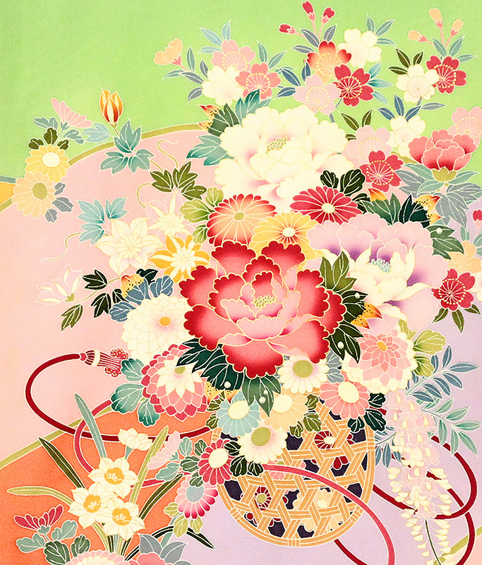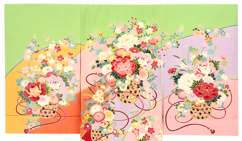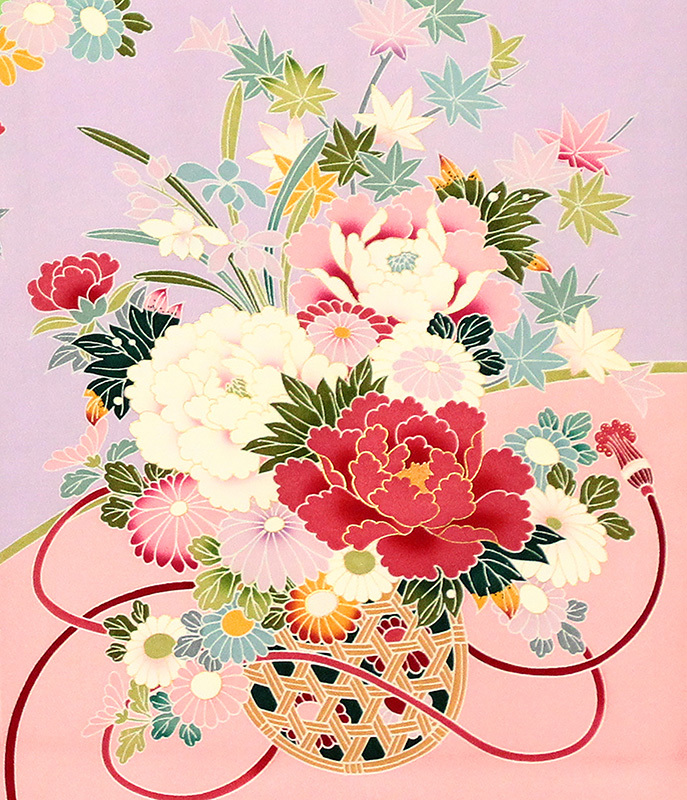 ※記念感謝祭☆正絹京友禅工芸最高級手加工美術染☆花かご古典四季花祝い文多色染め分け友禅染☆お祝着 |