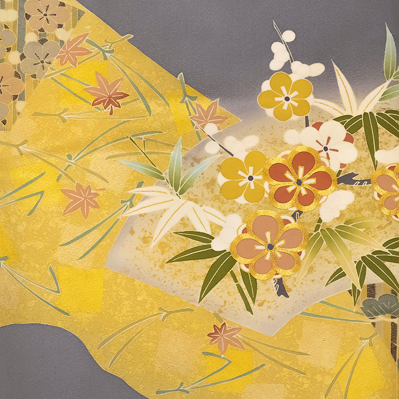 | ★品質・詳細 | ○地色 【こちらの地色は灰うす青藤系の地色です。】 ○絹織物 ○新品・未仕立の特撰色留袖の仮絵羽です。 ○最高級ちりめん地 ○参考上代 780,000円 |