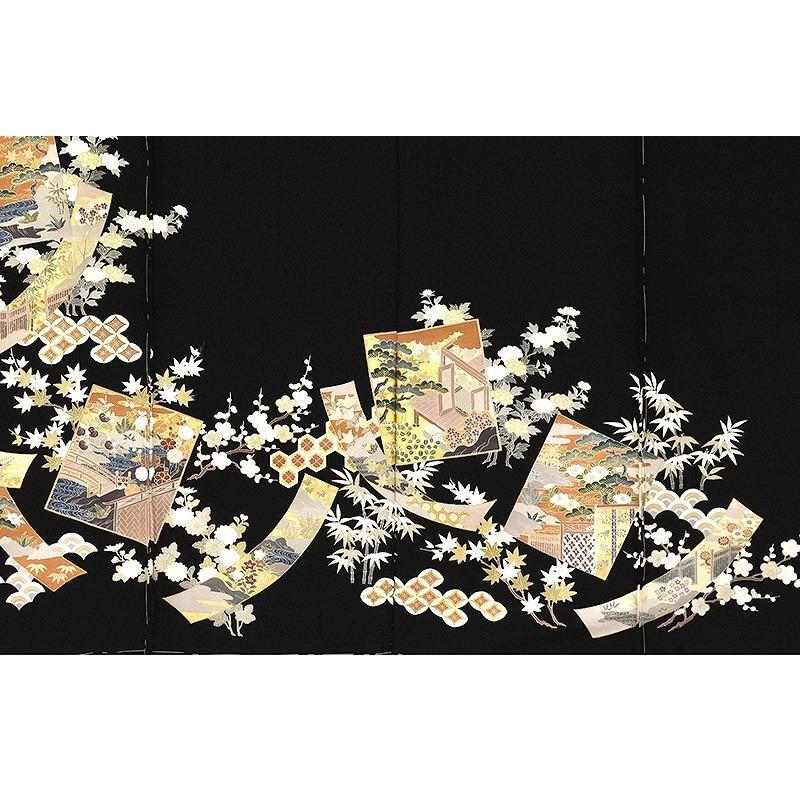 | ※記念感謝祭【仕立無料】京友禅伝統工芸手描き染、手刺繍、本金加工☆特撰吉祥室町情景色紙文黒留袖 |