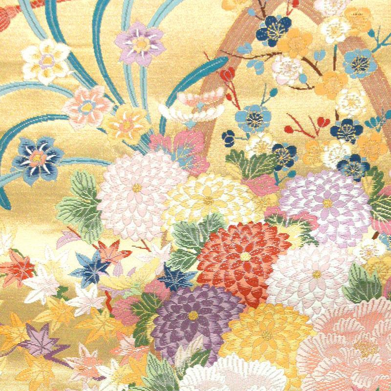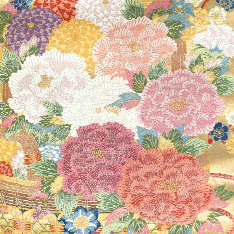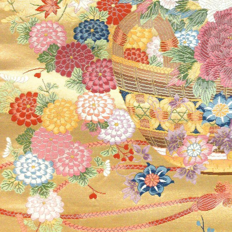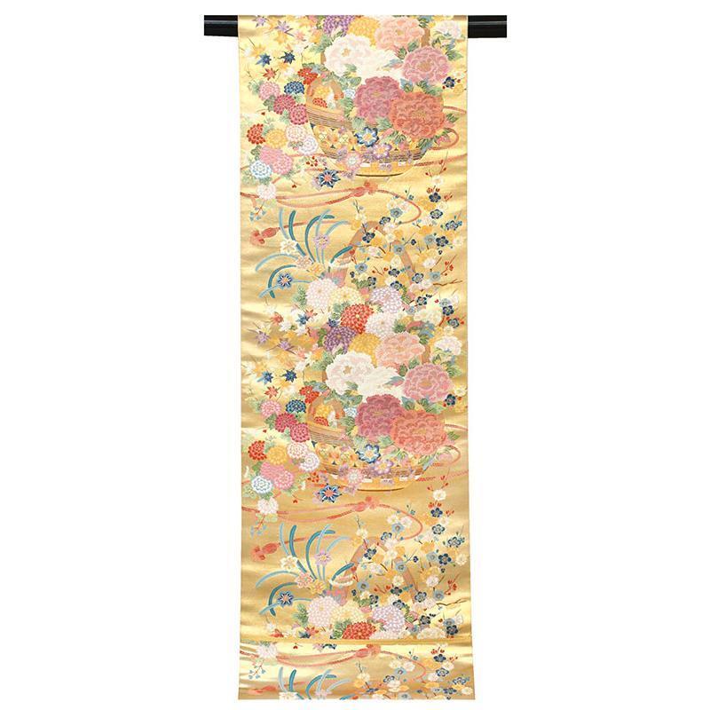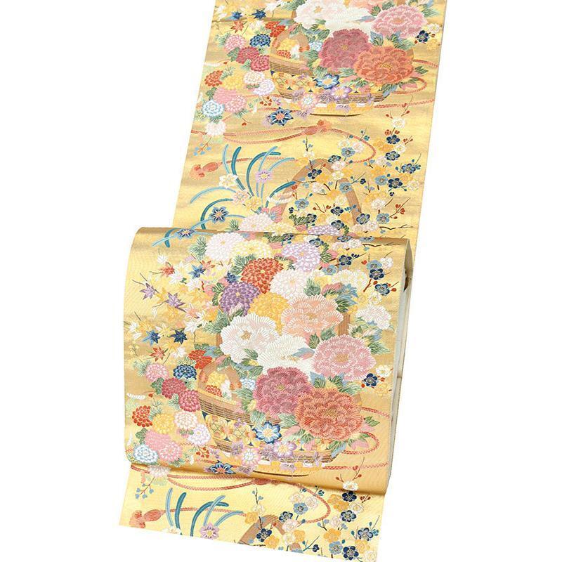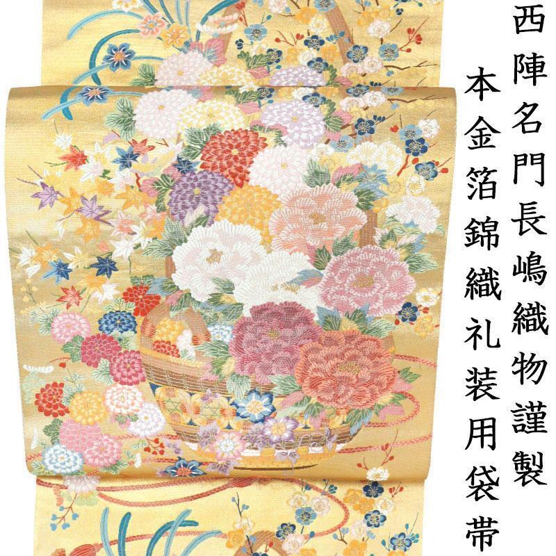 | ※記念感謝祭【仕立無料】西陣伝統工芸本金箔錦織礼装用袋帯☆名門長嶋織物謹製☆吉祥四季花籠文 |