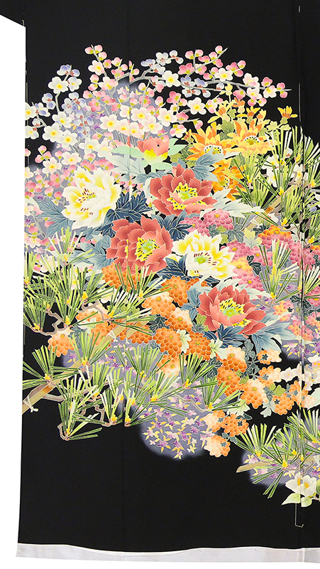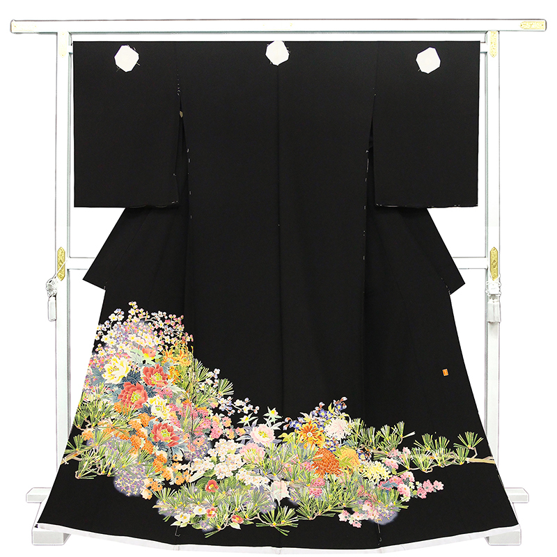 | ★品質・詳細 | ○地色 【こちらの地色は上品な黒地です。】 ○絹織物 ○新品・未仕立の特撰黒留袖の仮絵羽です。 ○最高級濱ちりめん生地使用 ○参考上代 1,100,000円 |
