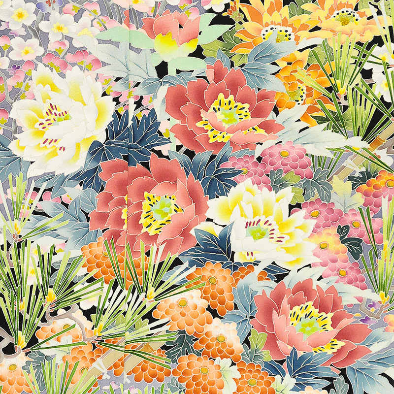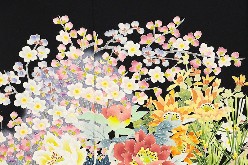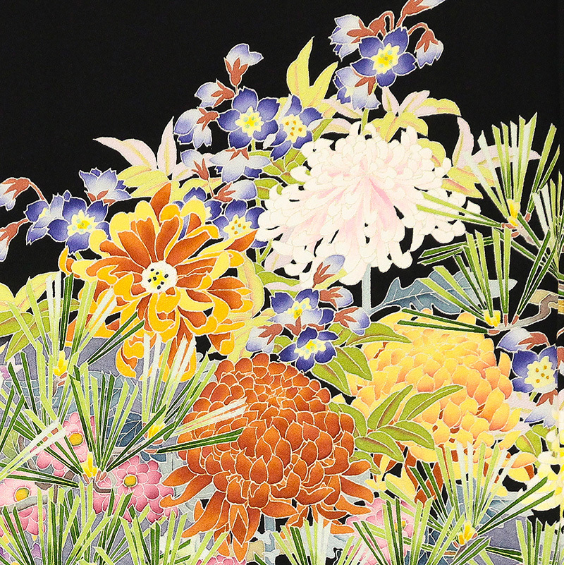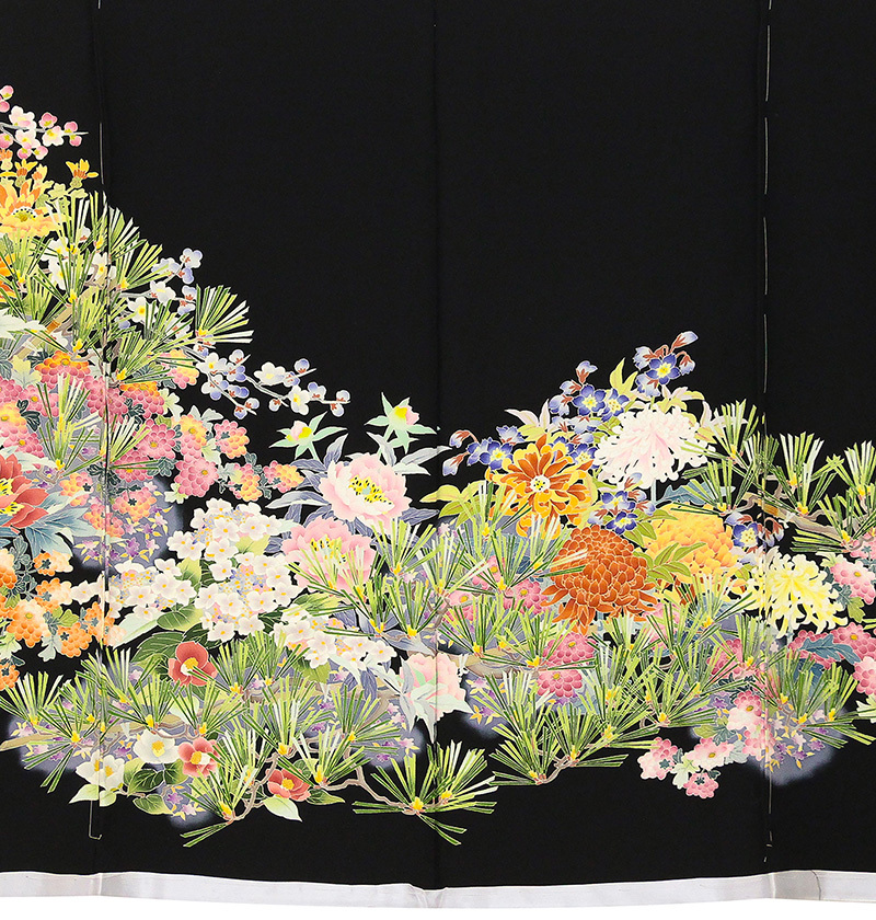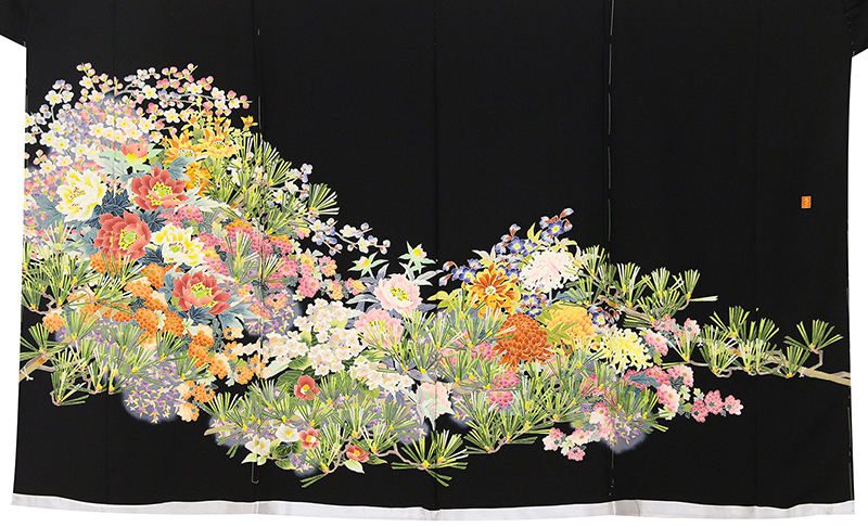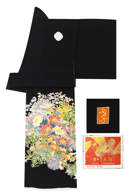 | ★商品説明 | ■最高の浜ちりめん生地、デザイン性、手描き工芸などすべてに最高の物作りで製作した黒留袖です。 ■本加賀友禅作家茶谷孝志先生の作品で工芸四季花祝い松竹梅文を新しい加賀五彩で描いています。 ■格調のある華やかさが式典で最高の着姿として披露されます。 |