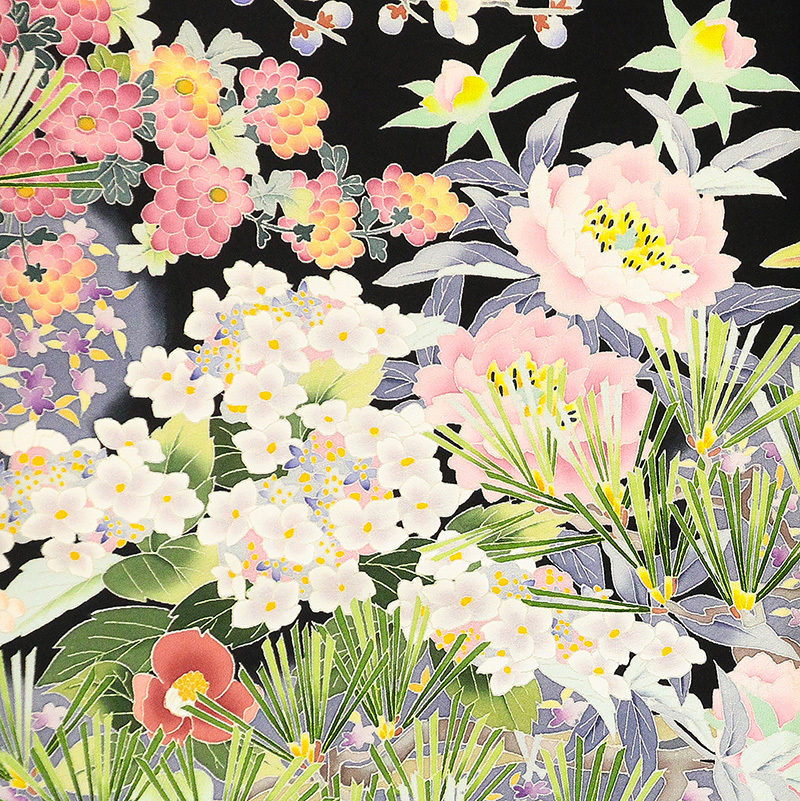 | ※記念感謝祭【仕立無料】特撰本加賀友禅加賀五彩工芸四季花松竹梅文☆伝統的工芸作家茶谷孝志先生作礼装黒留袖 |