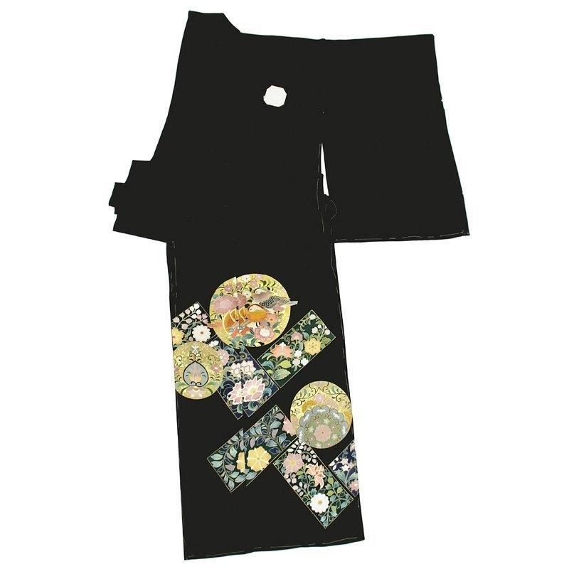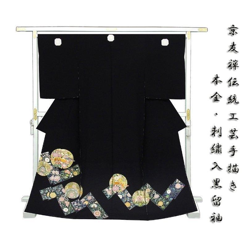 | ※記念感謝祭【仕立無料】特撰本金、手描き、刺繍入黒留袖☆京友禅伝統工芸祝オシドリ王朝更紗花文 |