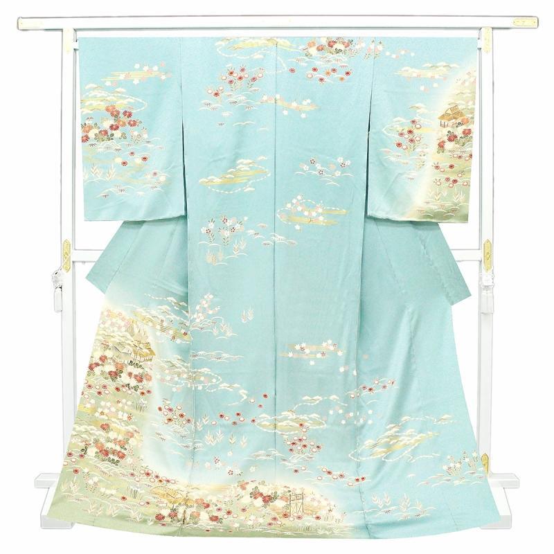 | ★商品説明 | ■絹の光沢を大切に水撚糸を使用し吉祥地紋の生地で制作された訪問着です。 ■吉祥室町情景文を京友禅手描染で本金加工を用い丁寧に制作されています。 ■華やかな式典や普段使いのお茶席など幅広くお使い頂ける逸品が着物ライフを応援します。 |