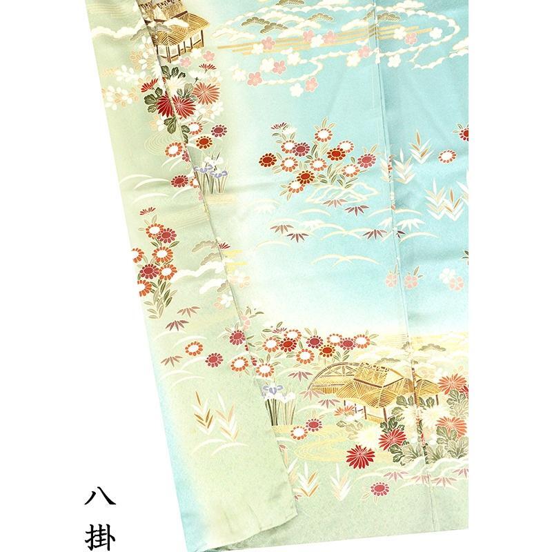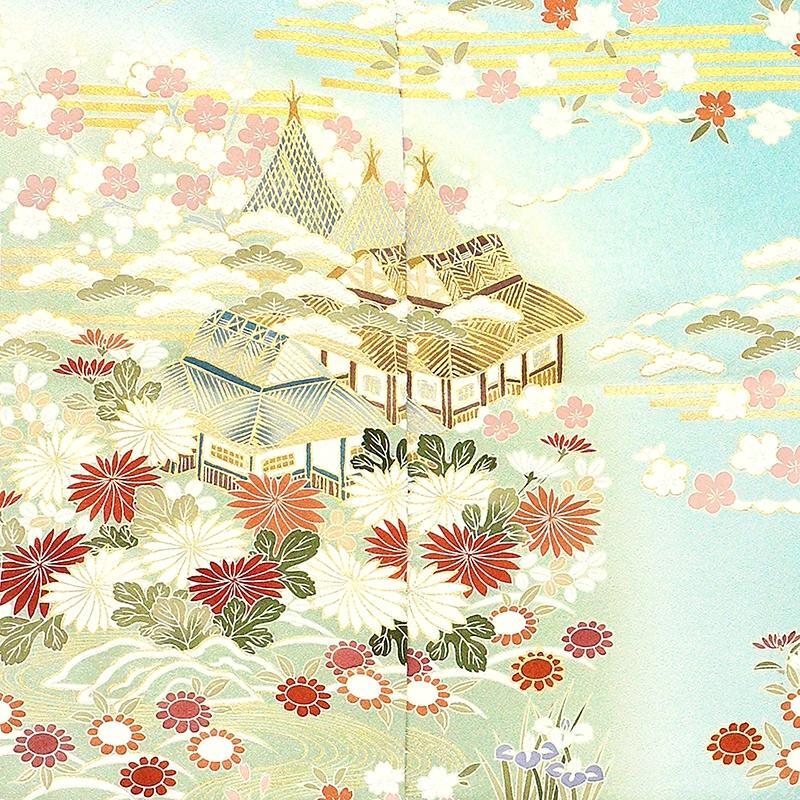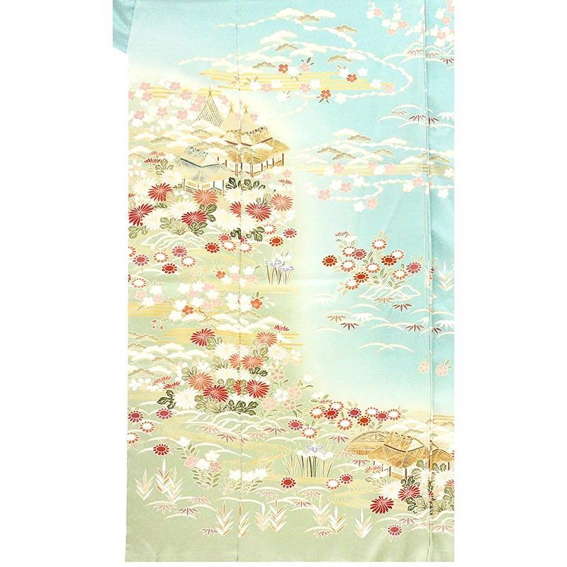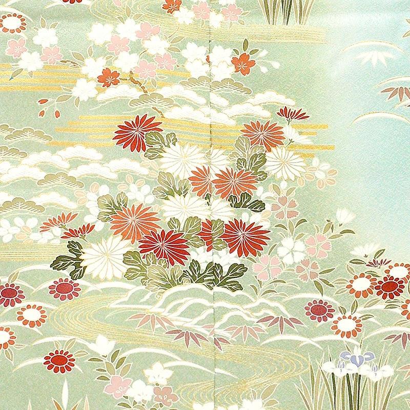 | ★品質・詳細 | ○地色 【こちらの地色は灰味のうす緑色系です。】 ○絹織物 ○新品・未仕立の逸品訪問着の仮絵羽です。 ○最高級ちりめん地 水撚八丁撚糸吉祥地紋生地 ○参考上代 680,000円 |