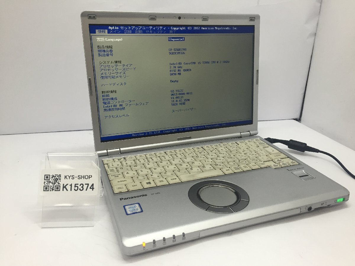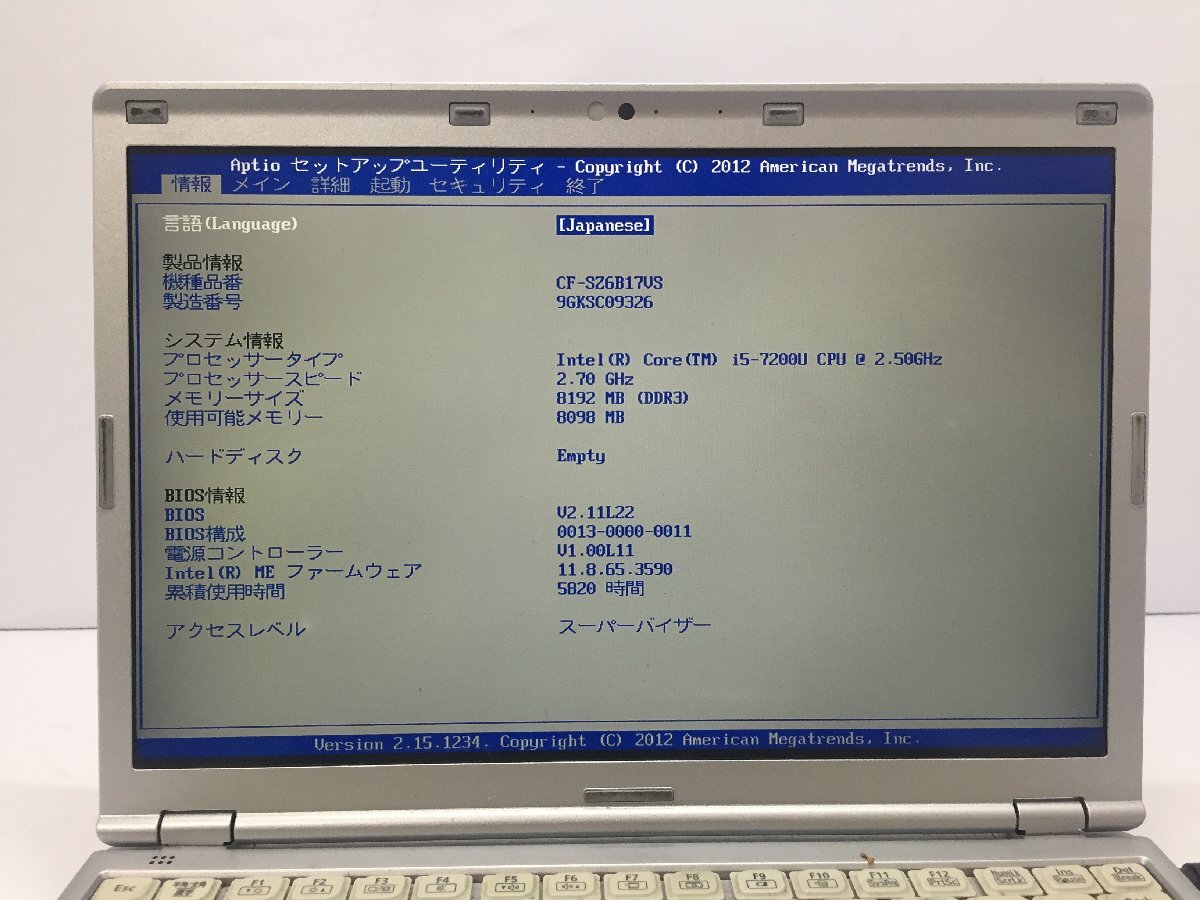 ジャンク/ Panasonic CF-SZ6B17VS Intel Core i5-7200U メモリ8.19GB ストレージ無し 【K15374】
