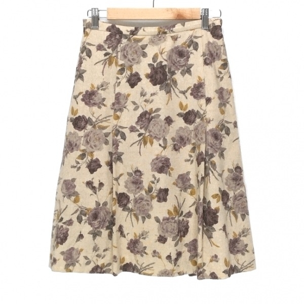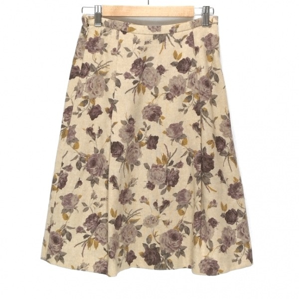 ニューヨーカー NEW YORKER スカート サイズ9 M - ベージュ×パープル×マルチ レディース ひざ丈/花柄 ボトムス