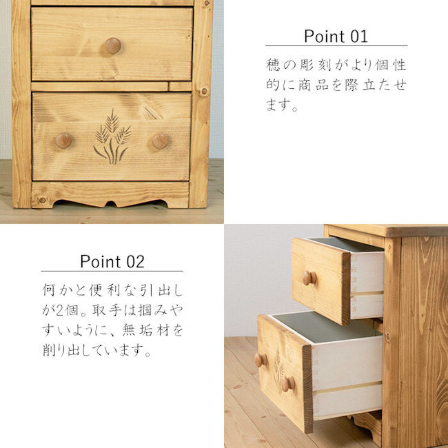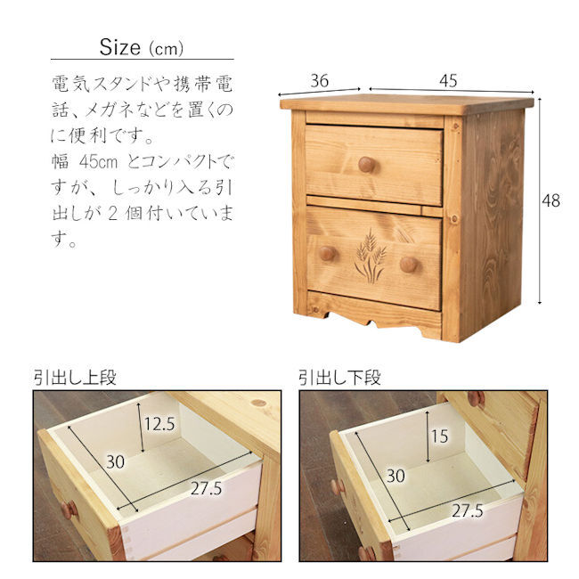 カントリー調パイン無垢材チェスト幅45cm 収納 キャビネット(535)