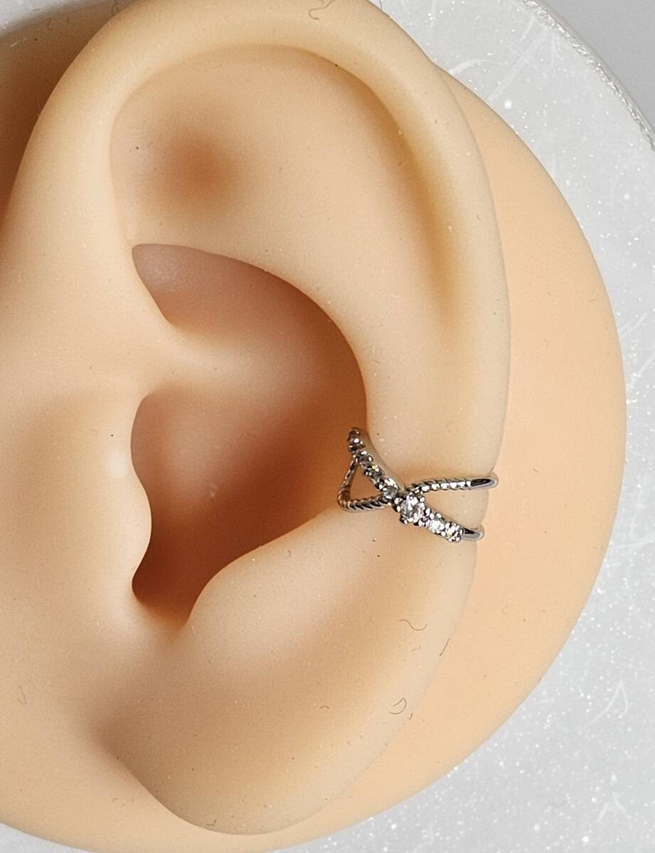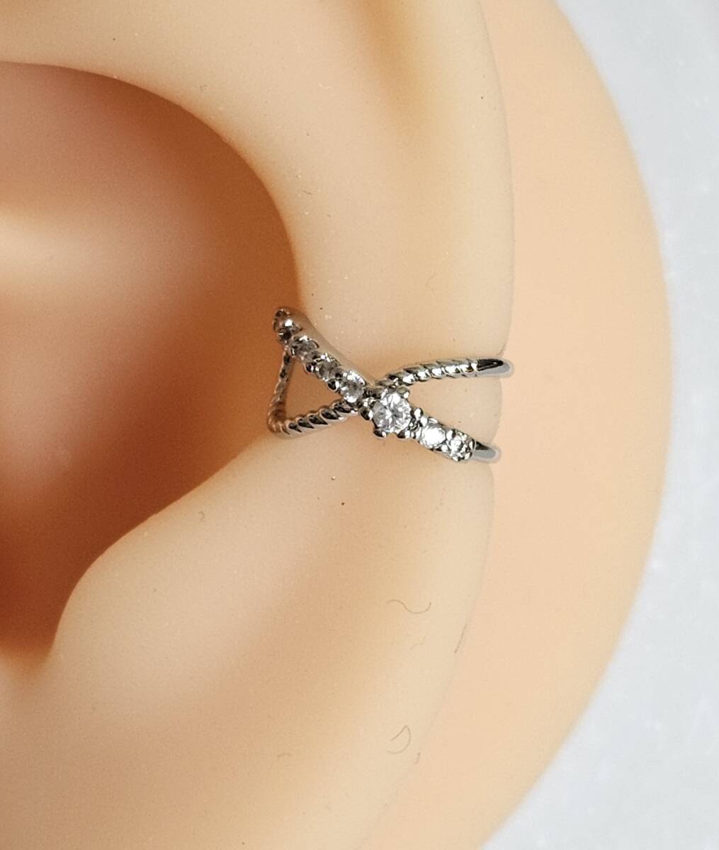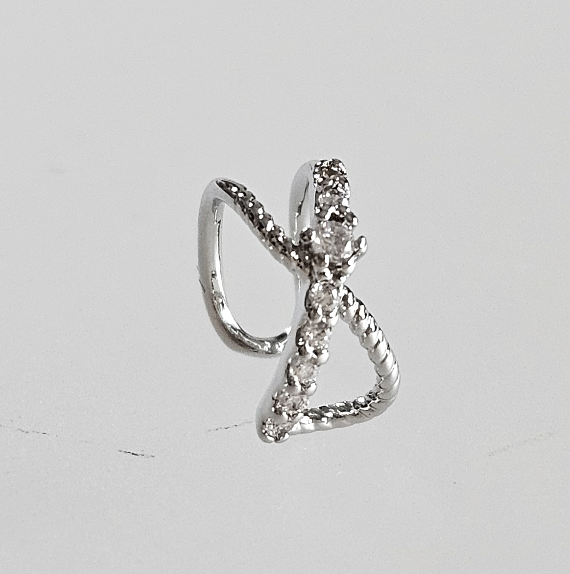 【2個価格】韓国製l・イヤーカフパーツ★煌めくキュービック★CZ 本ロジウム 1ペアで550円
