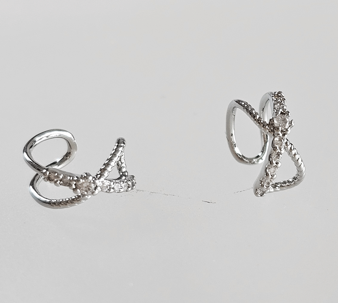 【2個価格】韓国製l・イヤーカフパーツ★煌めくキュービック★CZ 本ロジウム 1ペア