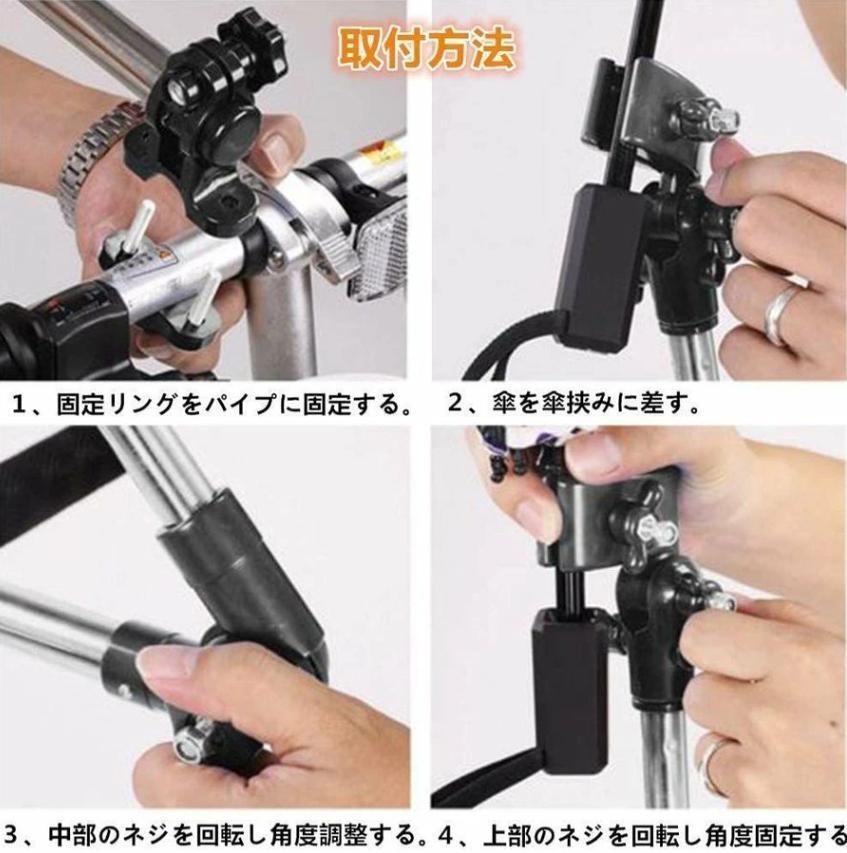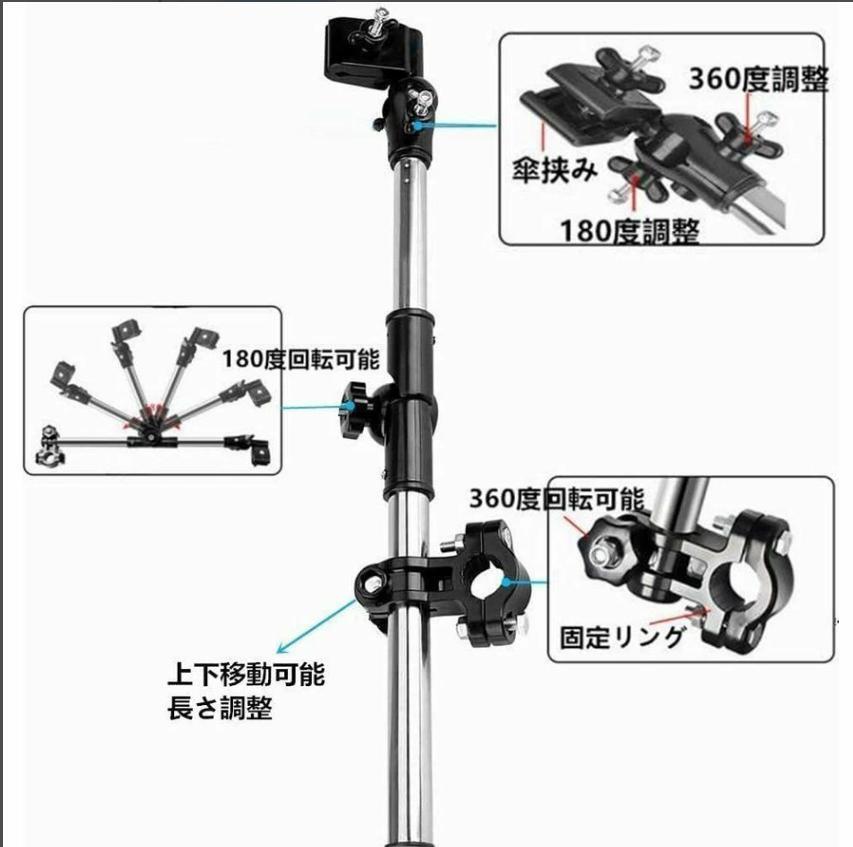 【360度回転・長さ調整可能】360°+ 180°の双方向調整を実現し、傘の方向と傾きを自由に調整できます。スタンドの長さが42㎝まで調整できます。ユーザーの身長や自転車などのハンドルの高さに合わせることができて、ご要望より傘を固定できます。