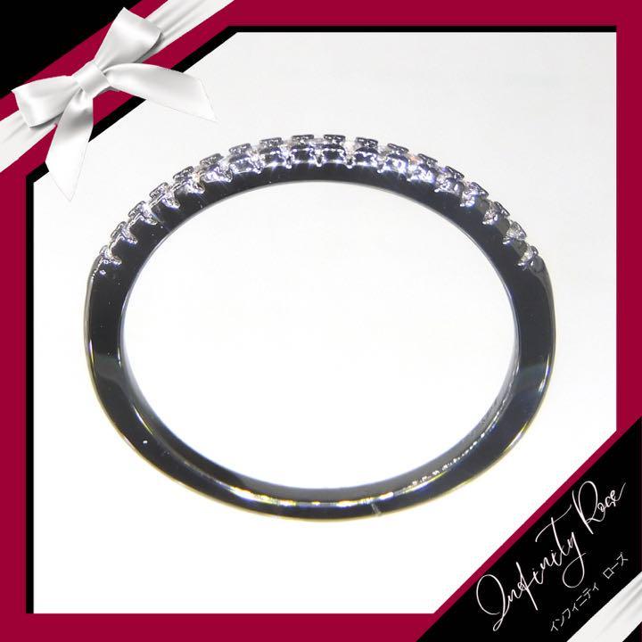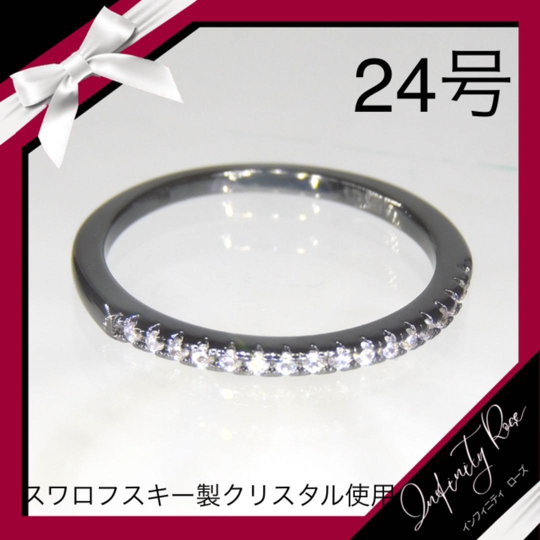 (1074)24号 ブラック 小粒 繊細な極細リング 指輪 スワロフスキー製クリスタル使用 細身リング 重ね付け