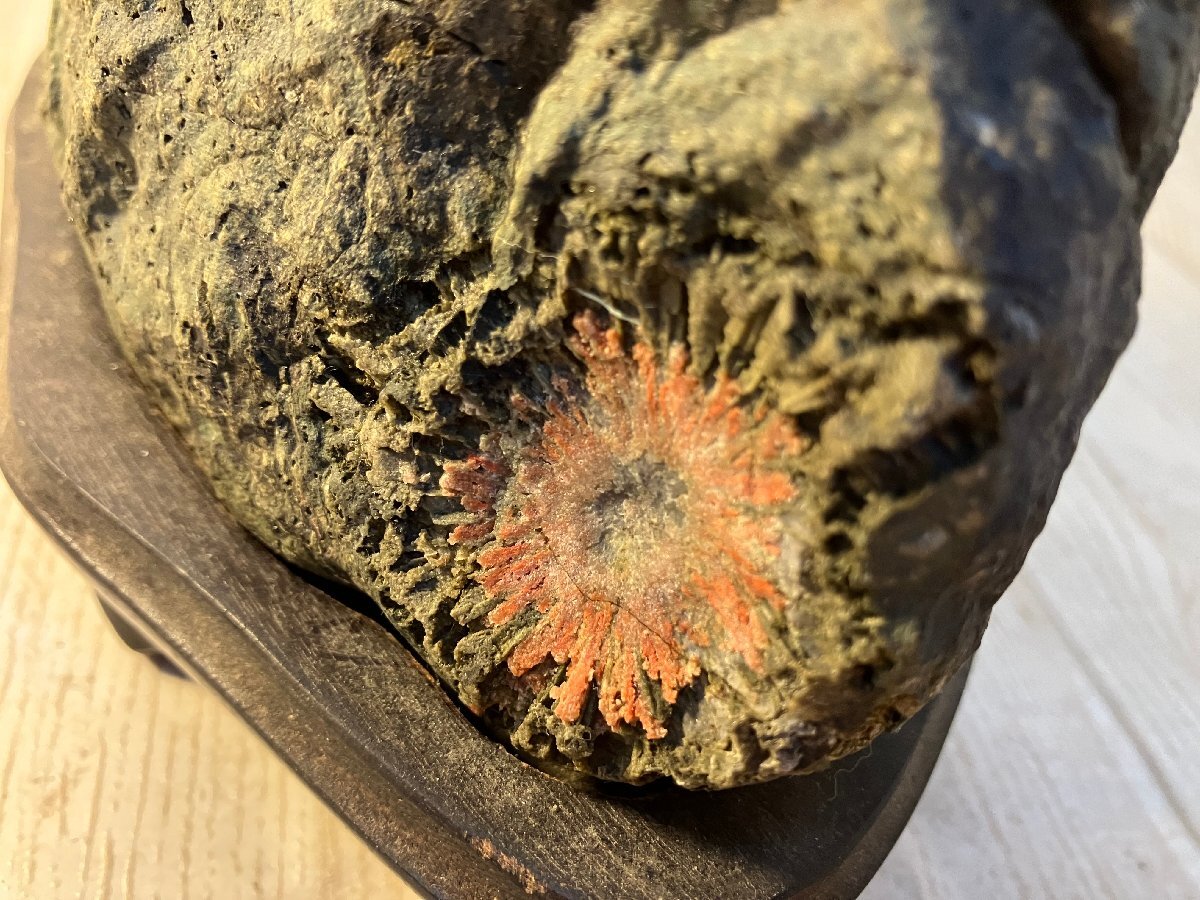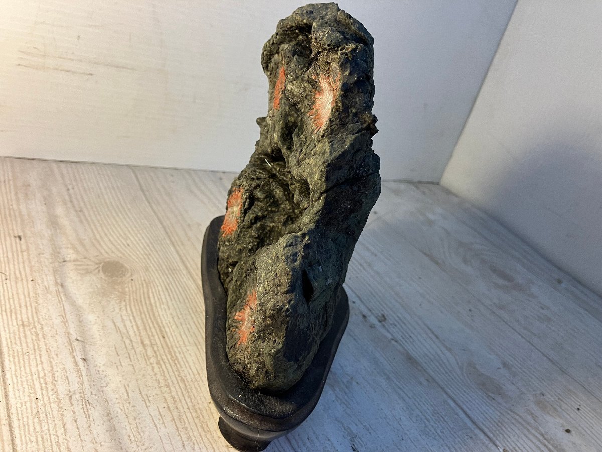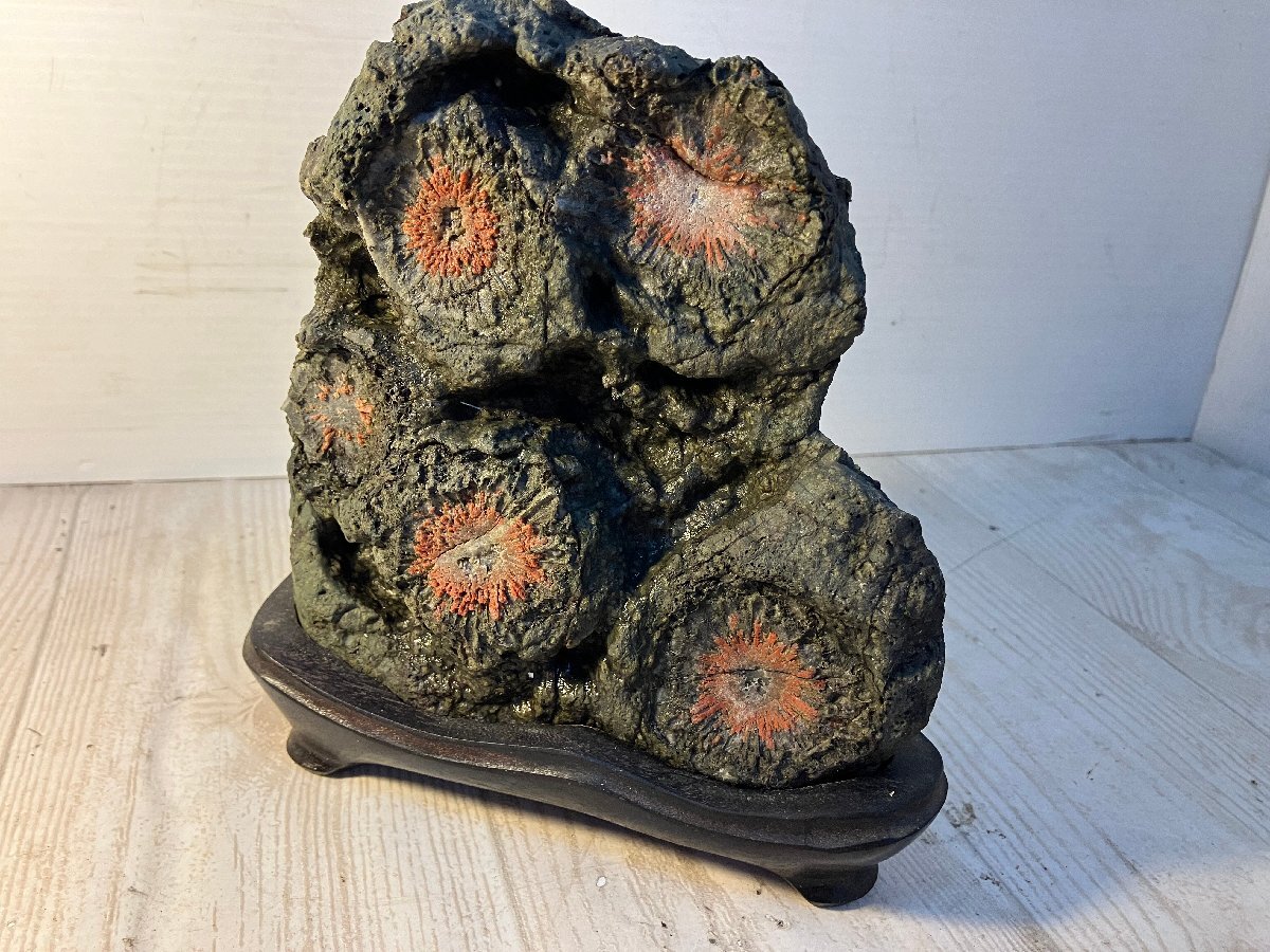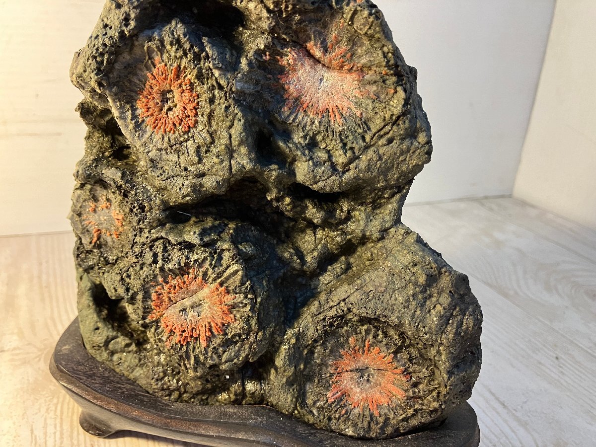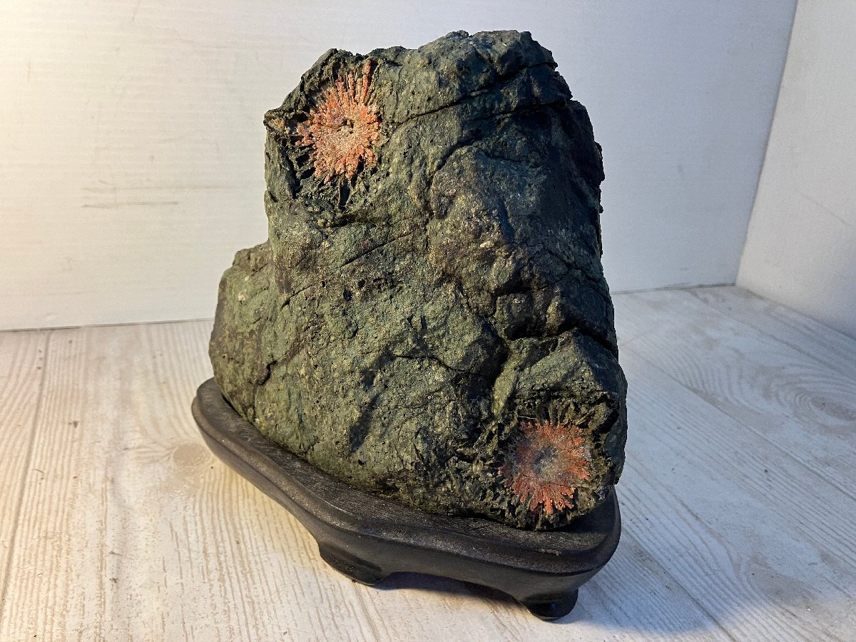 | 根尾産 菊花石 美しい緑母岩 赤花7輪 根尾産の大変希少な逸品 キバ花の菊花石 赤花7輪<表5輪 裏2輪> サイズ<台入れて> W16cm xH 17cmxD7cm 重さ 1830g 状態は画像でご確認下さい。 神経質な方はご遠慮願います。 写真に写っているものが全てになります。 品物の画像につきましては、パソコン、ディスプレイの環境や設定によっては商品のカラー等が実物と異なって表示されることもございます 。 状態など写真で確認頂き御理解の上、ご購入を宜しくお願い致します。 (※素人採ですので、あくまで目安としてください。) 当社のオークションは返品・交換・キャンセル等は一切お断りさせて頂いております。充分ご検討の上ご入札下さいませ。 ★出品中の商品は、店頭でも販売しております。 店頭で売れた場合には期日に関わらずオークションを早期終了させていだきます (ご入札があった商品は直ちに店頭からお下げしておりますが、稀に入れ違いで売れてしまう場合もございます。ご了承くださいませ) | |