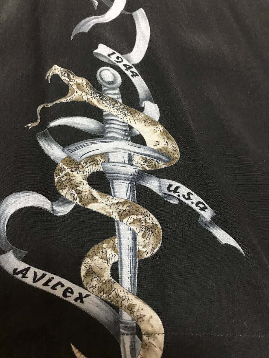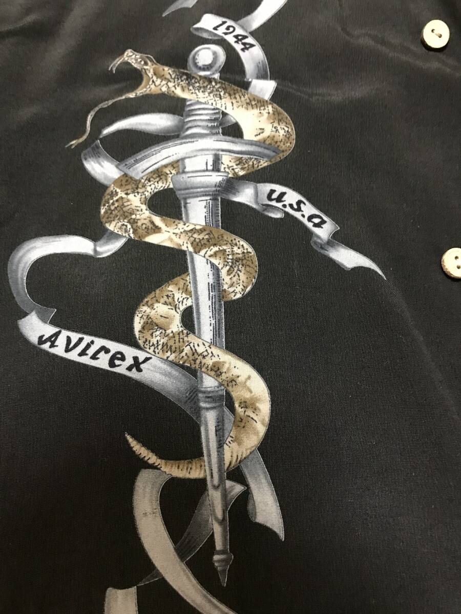 AVIREX アビレックス アロハシャツ 黒 ①(ヘビと剣)
