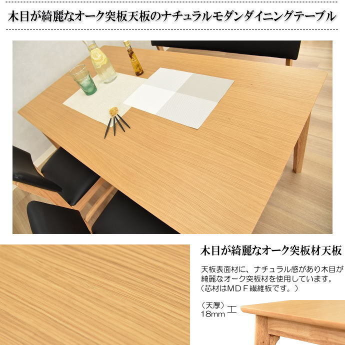 | 【商品名】 | 4人掛け用幅150cmオーク突板材天板ナチュラルモダンダイニングテーブル (ナチュラル色) | |
