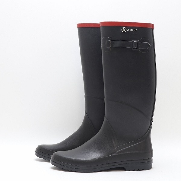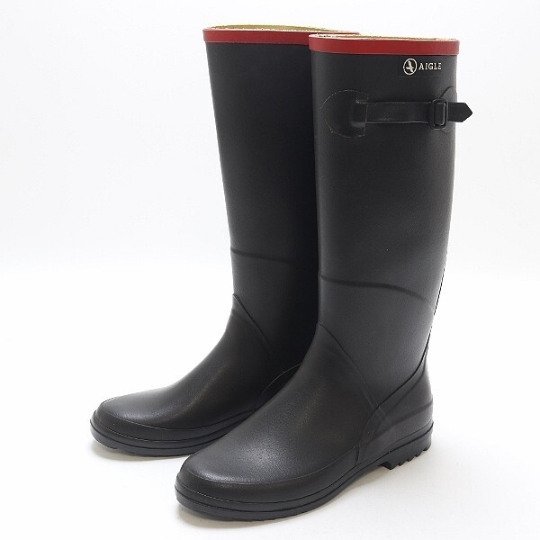 | ◆AIGLE エーグル ラバー ロング レイン ブーツ 黒 ブラック×レッド | |