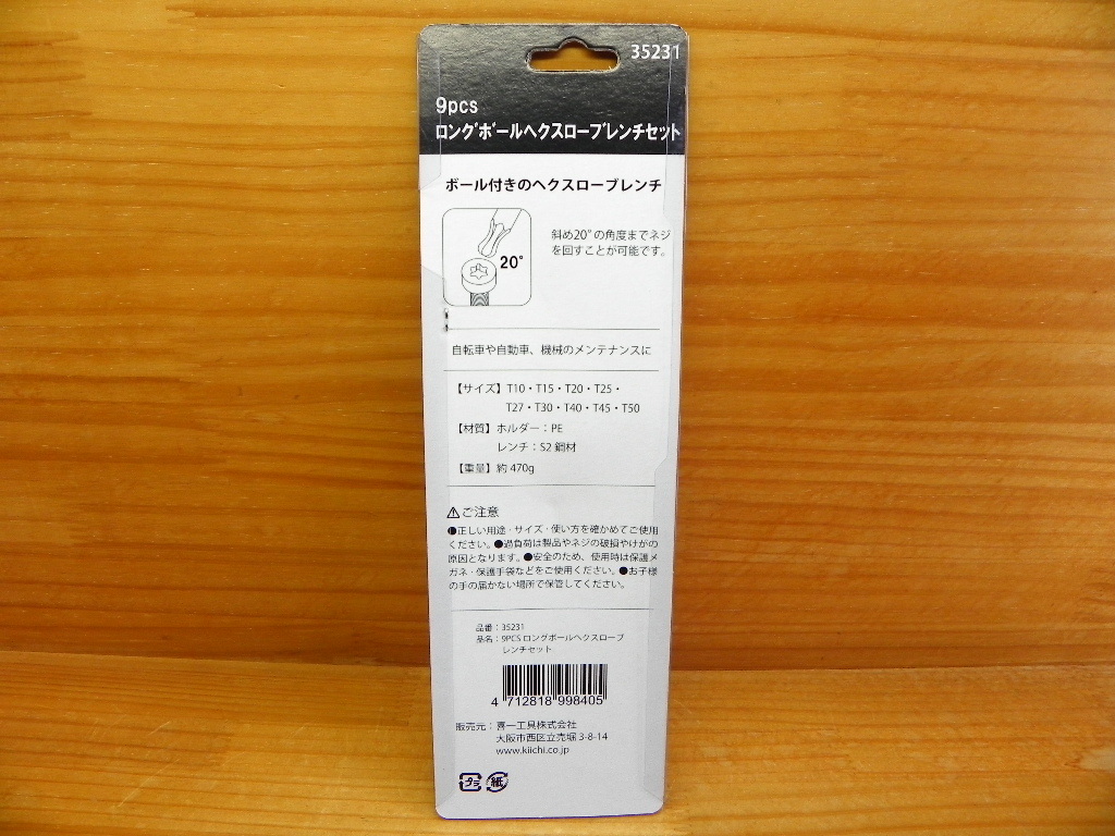 シグネット L型ロング ボール付 トルクス レンチセット 9本組 (丸軸) SIGNET 35231 TORX ヘックスローブ