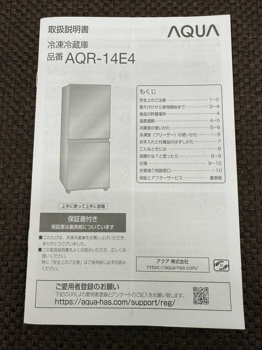 ●メーカー:AQUA/アクア ●型番:AQR-14E4(W) ●外形寸法:幅495x奥行573x高さ1193mm ●質量:37kg ●全定格内容積:137L ●冷凍室の定格内容積:51L ●冷蔵室の定格内容積:86L ●電源:100V・50/60Hz ●年式:2024年製 ●使用回数1回の美品冷蔵室になっております。 ●動作確認のチェック済みです。 |
