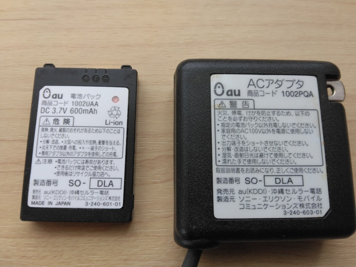 au ソニーエリクソン 電池パック 1002UAA KDDI ACアダプタ付 1002PQA 充電動作確認済み 電池パックと充電機のセットとなります。