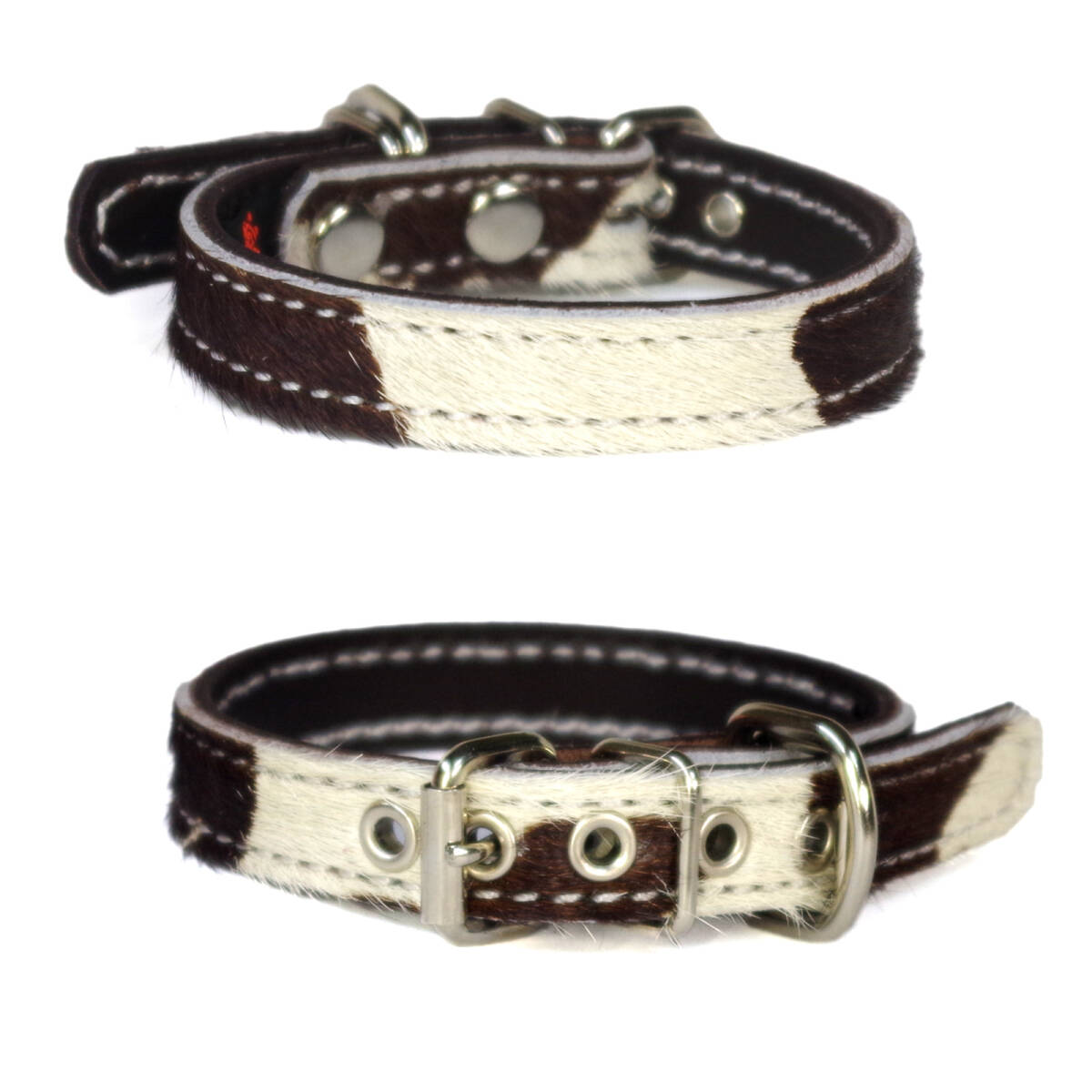 小型犬用の1.5cm幅のハラコ 革首輪です.