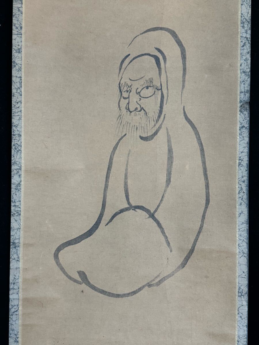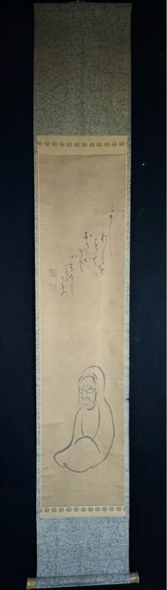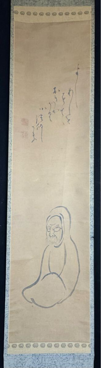 鳳◆ 白隠慧鶴「達磨自画賛」紙本 仏画 仏教美術 書 絵画 掛軸 共箱江戸時代中期 臨済宗の僧 白隠256-2 検: 一灯 中国画