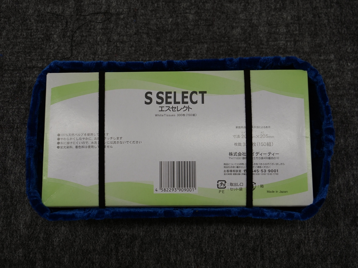 BOXティッシュは付属しません、撮影時は、235*120*55のティッシュを入れて撮影してあります。
