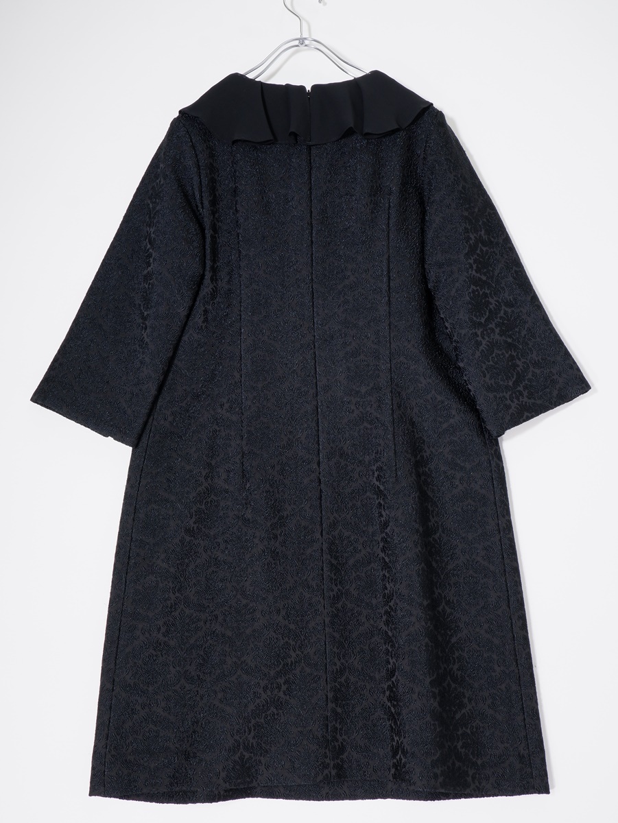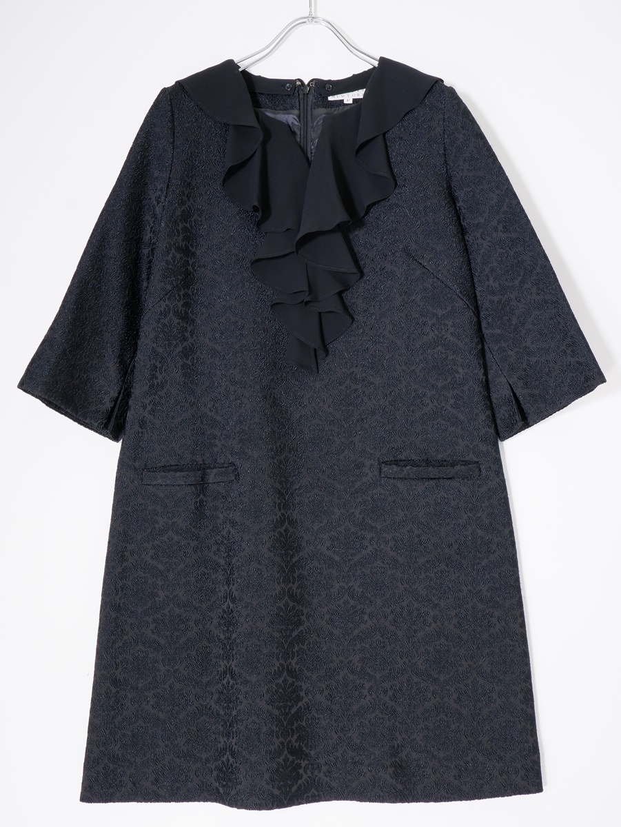 【素材感】ジャガード調のポリ混地 【透け感】なし 【裏地】あり 【ストレッチ】多少あり 【開閉デザイン】バックジップ 【付属品(取り外し可)】なし 【商品情報】日本製 フリル部分は取り外し可能。 |