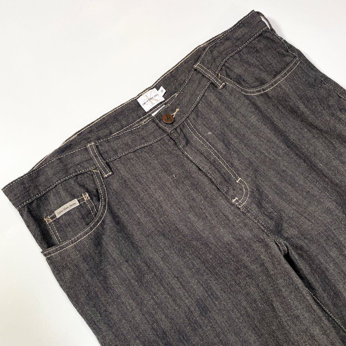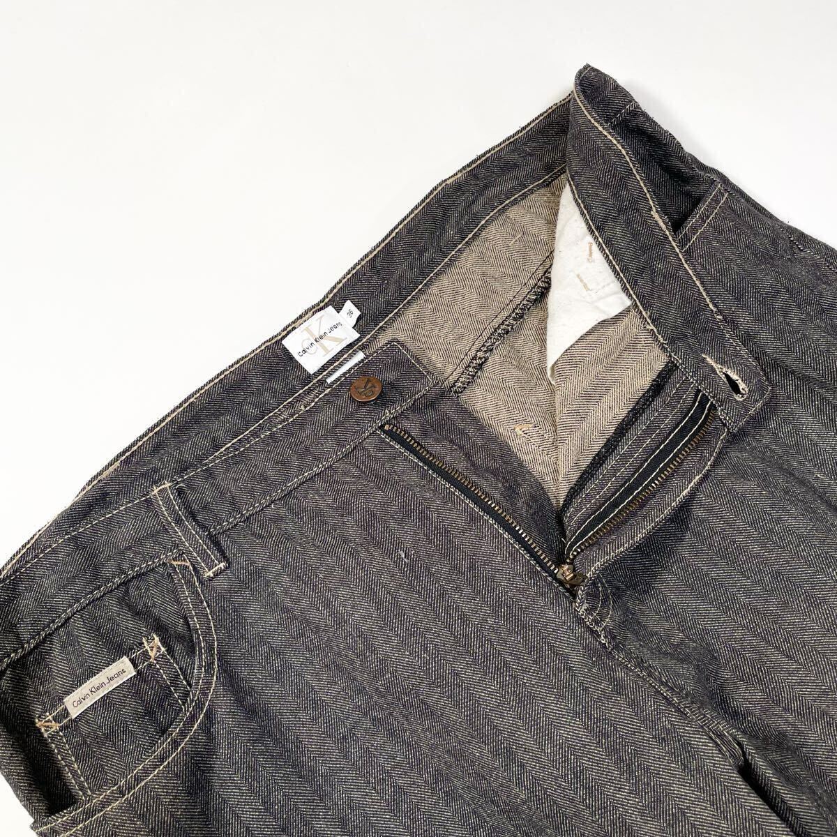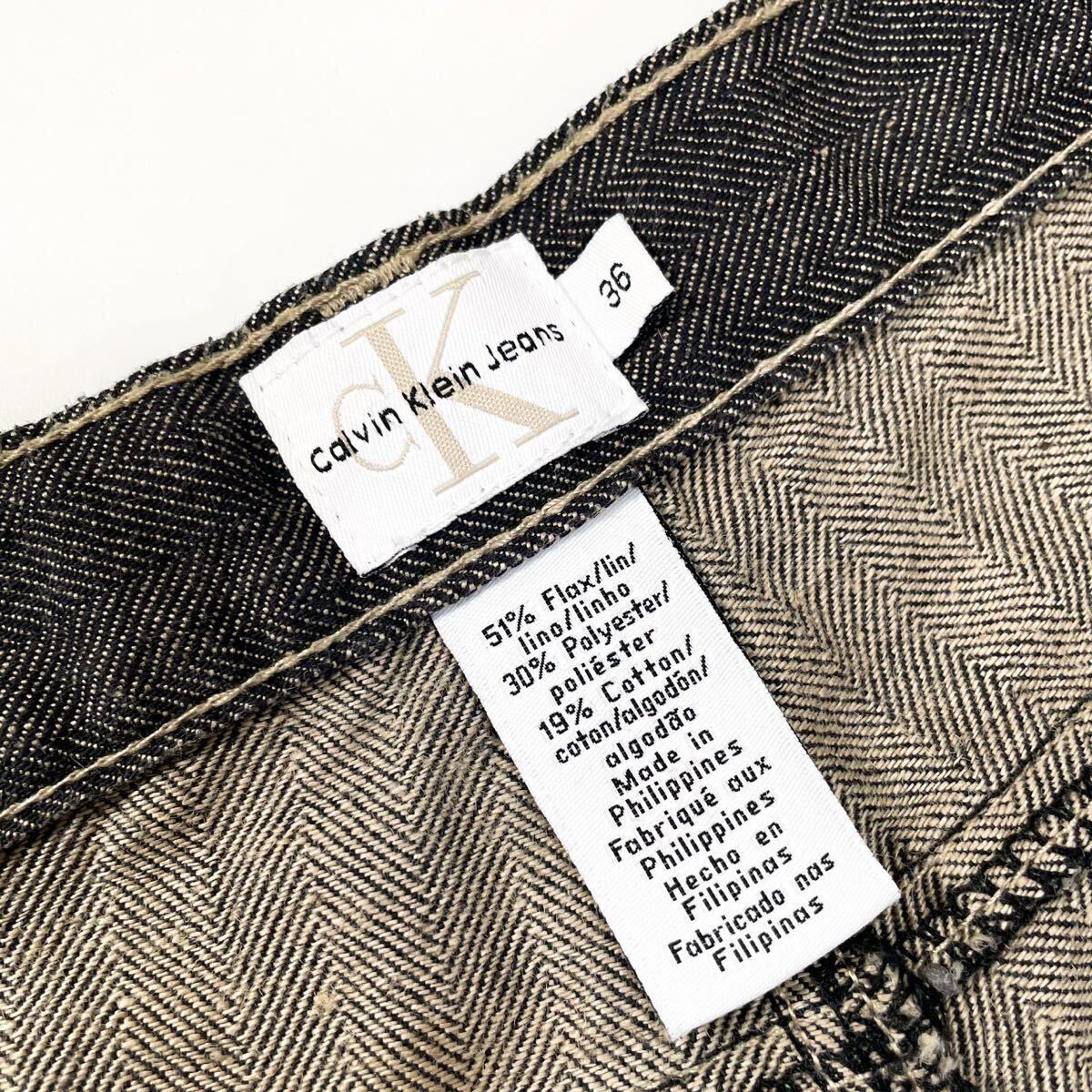 90s Calvin Klein カルバンクライン リネン コットン ヘリンボーン デニムパンツ ジーンズ 36×29 ブラック HBT ck 80s 00s バギー