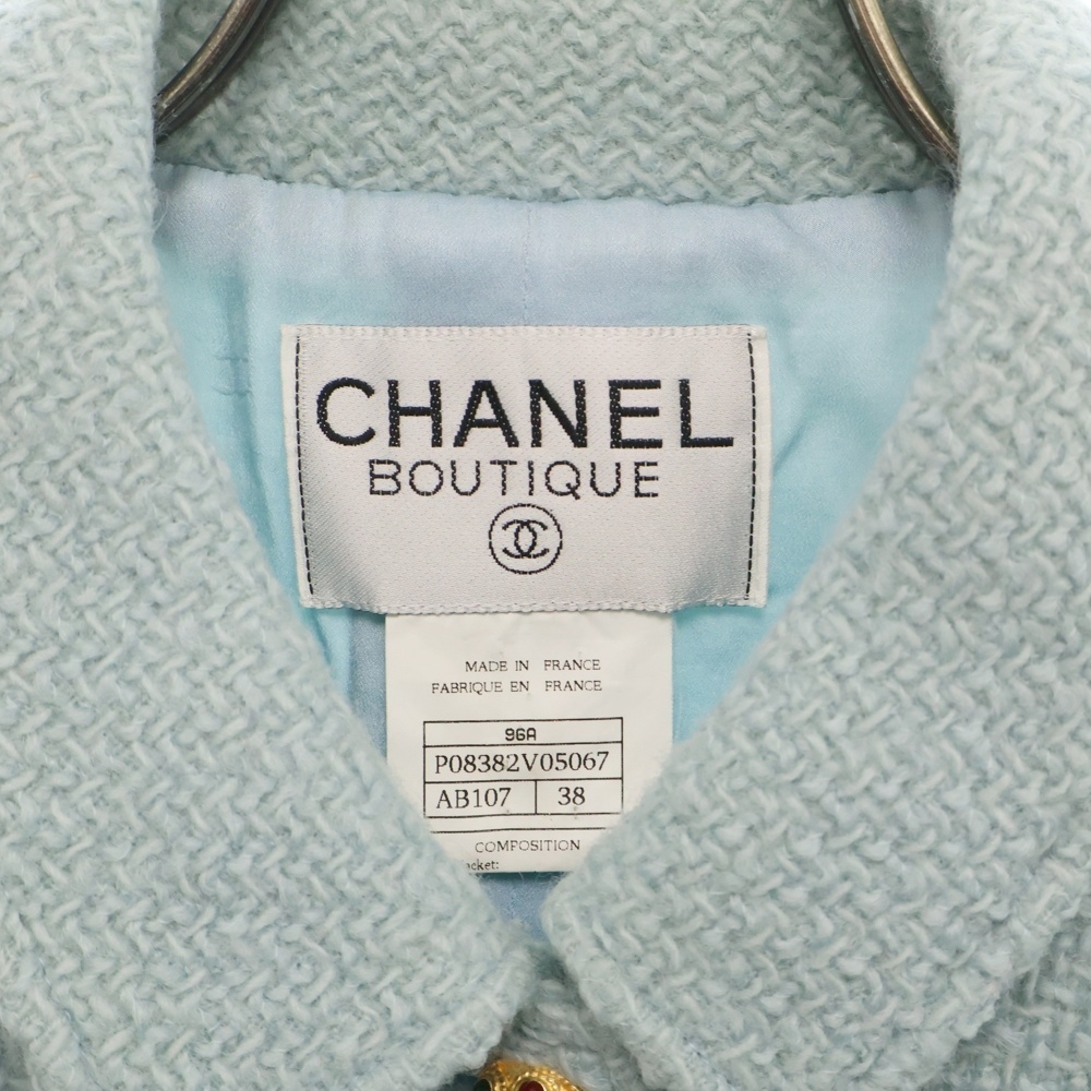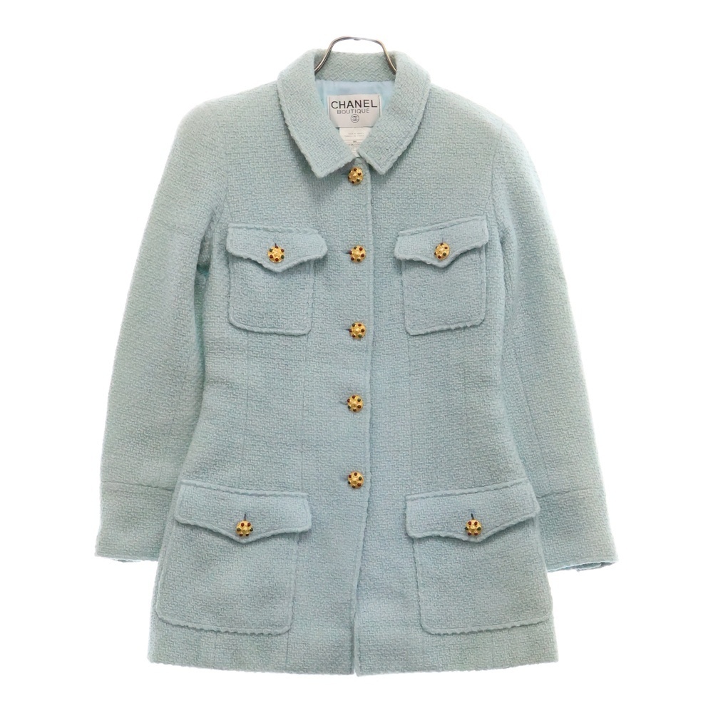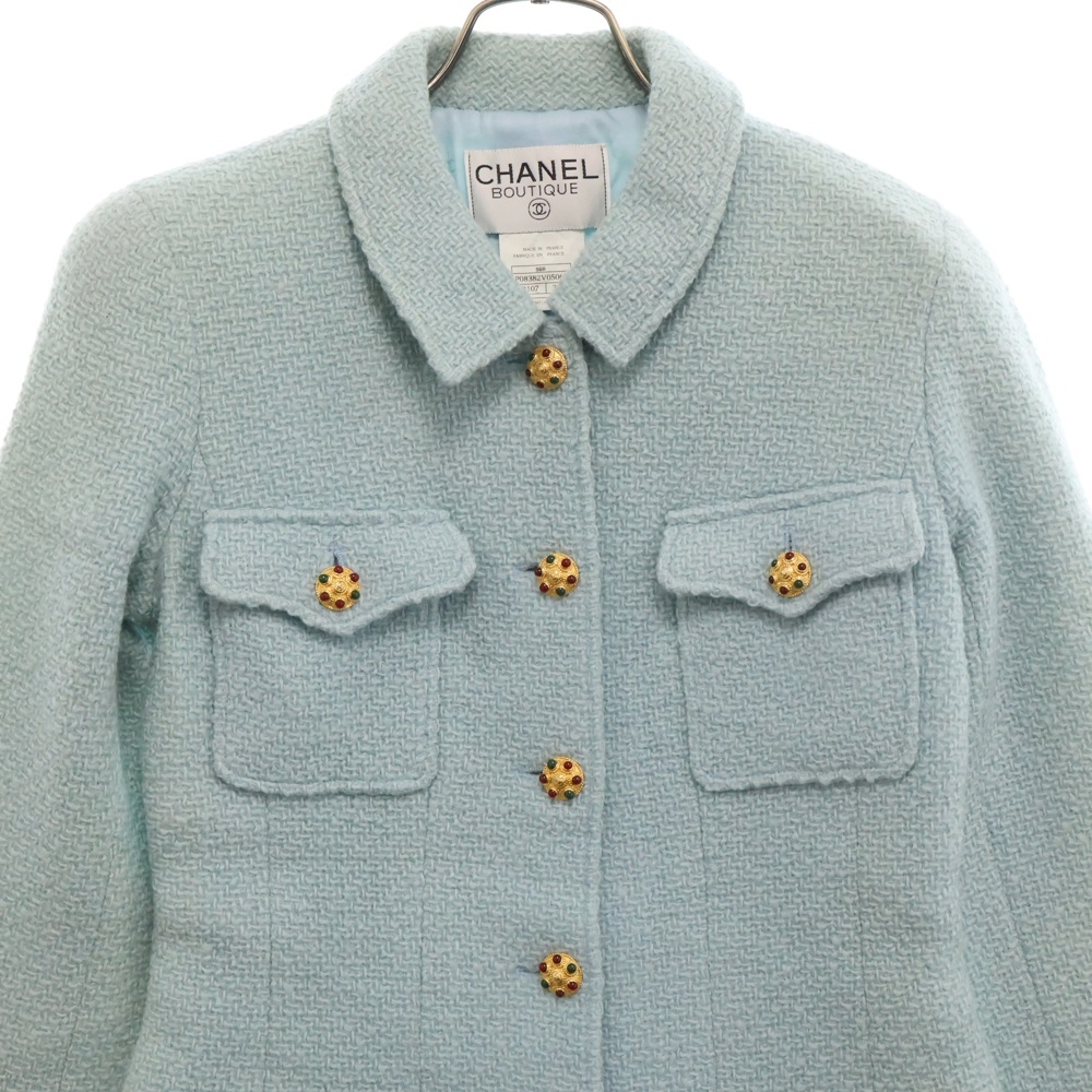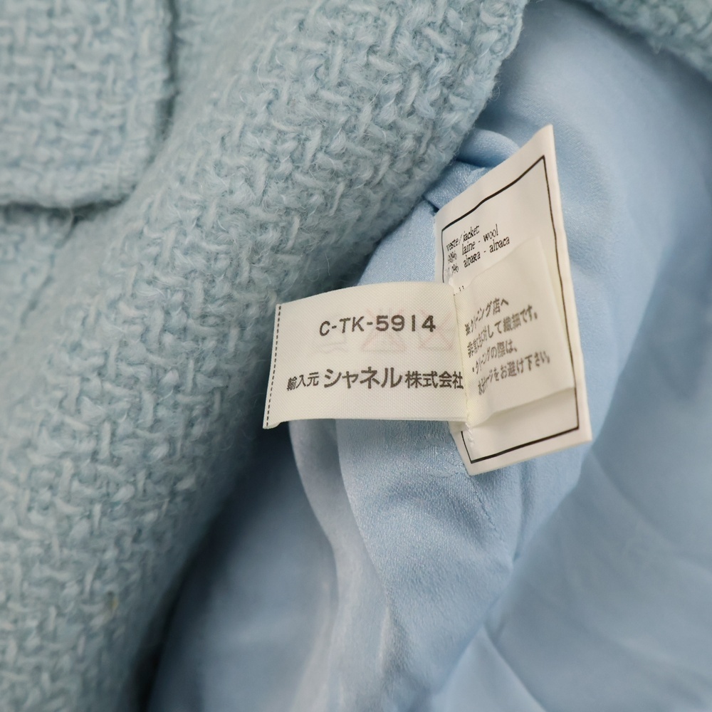 CHANEL シャネル ココボタン 4ポケット アルパカ混 ウールツイード 5Bジャケット 96A P08382V05067 ライトブルー レディース