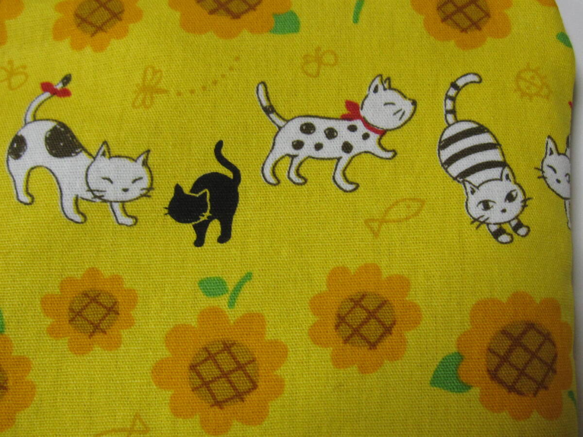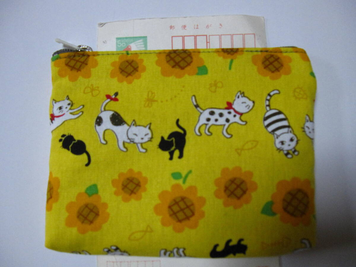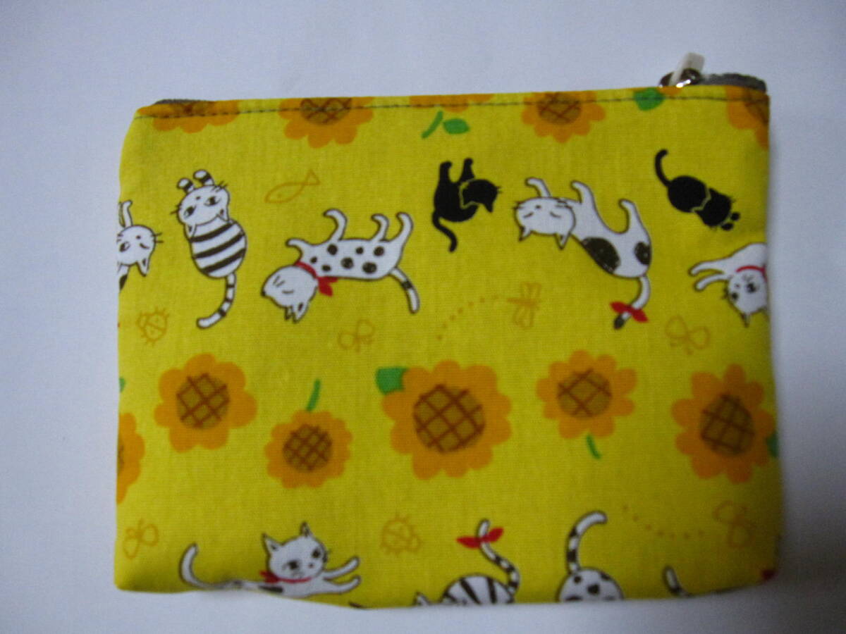 手作り 小物 ポーチ 猫 向日葵 花 模様 動物 ねこ 蝶 ひまわり ハンドメイド 冬 財布 充電器 男女 兼用 可愛い 綿 キュート 黄色×オレンジ