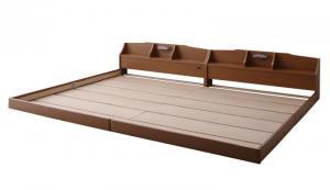親子で寝られる収納棚・照明付き連結ベッド ベッドフレームのみ クイーン(SS×2)