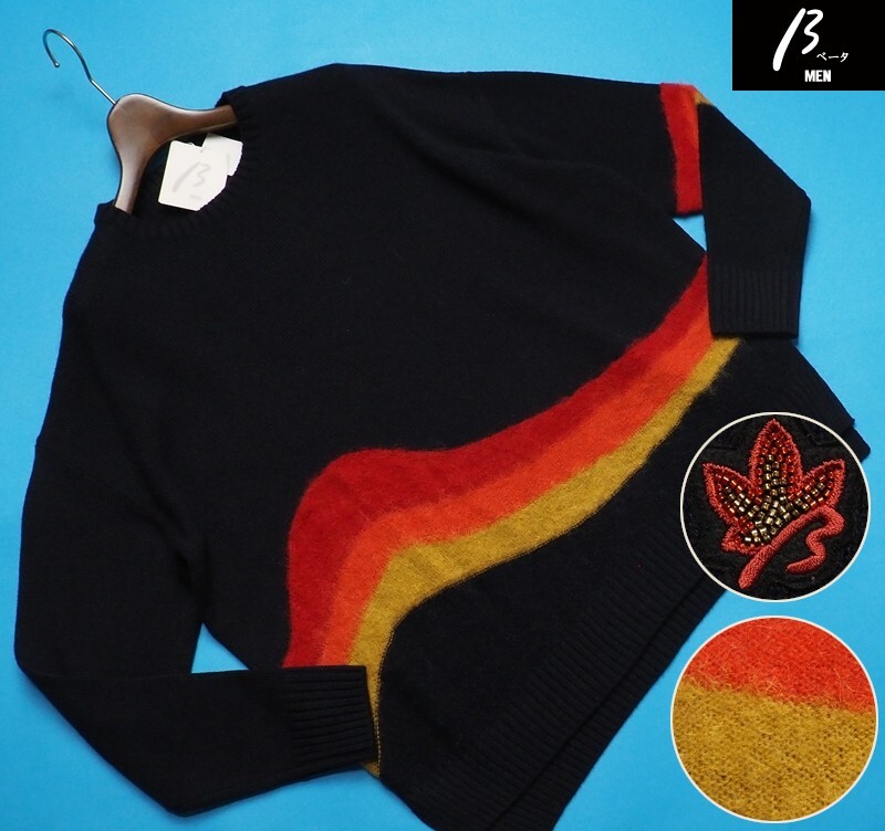 新品定価5.8万円 β MEN ベータメン 日本製 グラデーション ジャガード ニット/セーターF紺(09)86KI35