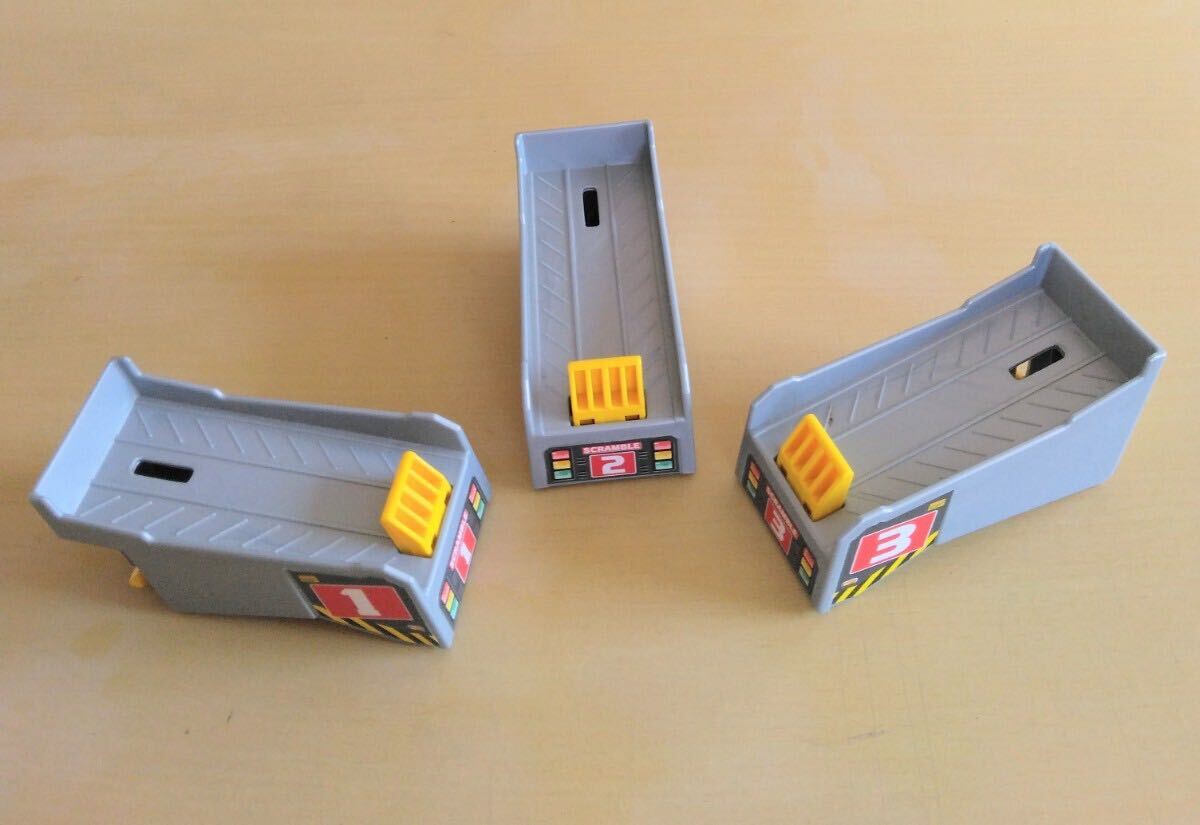 ◯後ろの電源ボタンの上のボタンを押すと、アナウンスと共に手前の車を置くところ3箇所が上昇します。