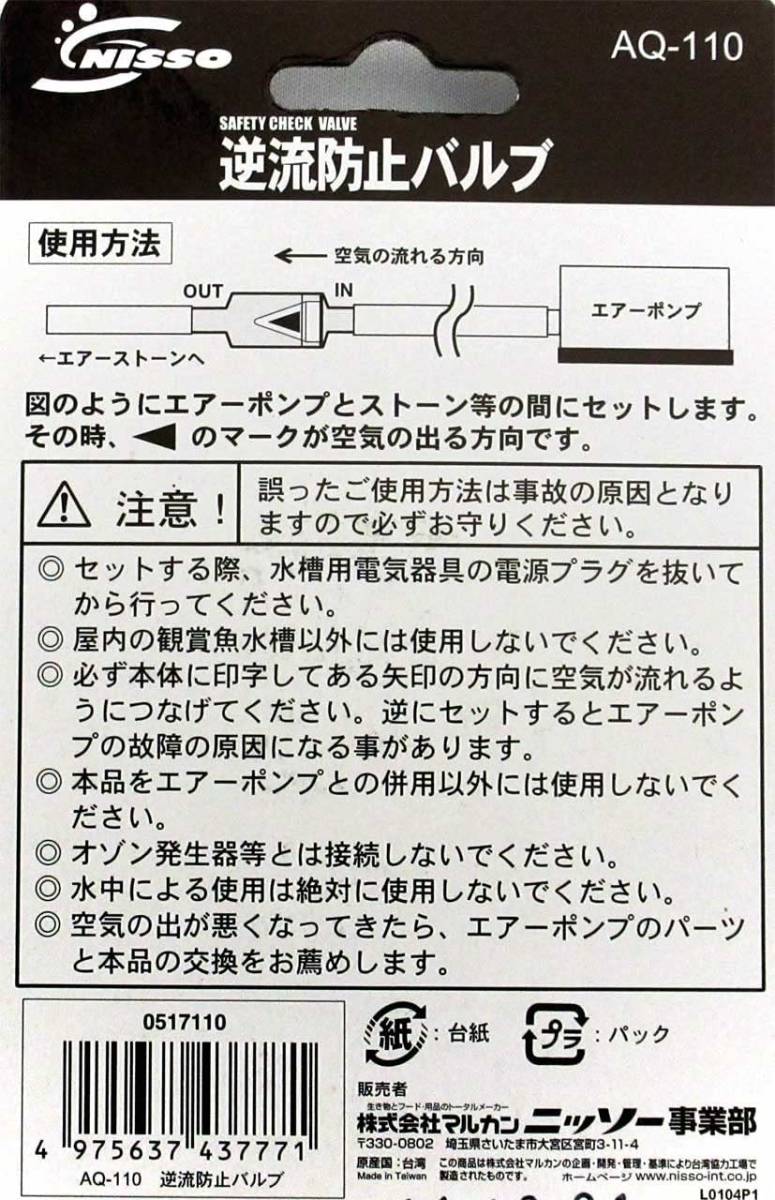 ●商品名:ニッソー 逆流防止バルブ (AQ-110 ) × 2個セット