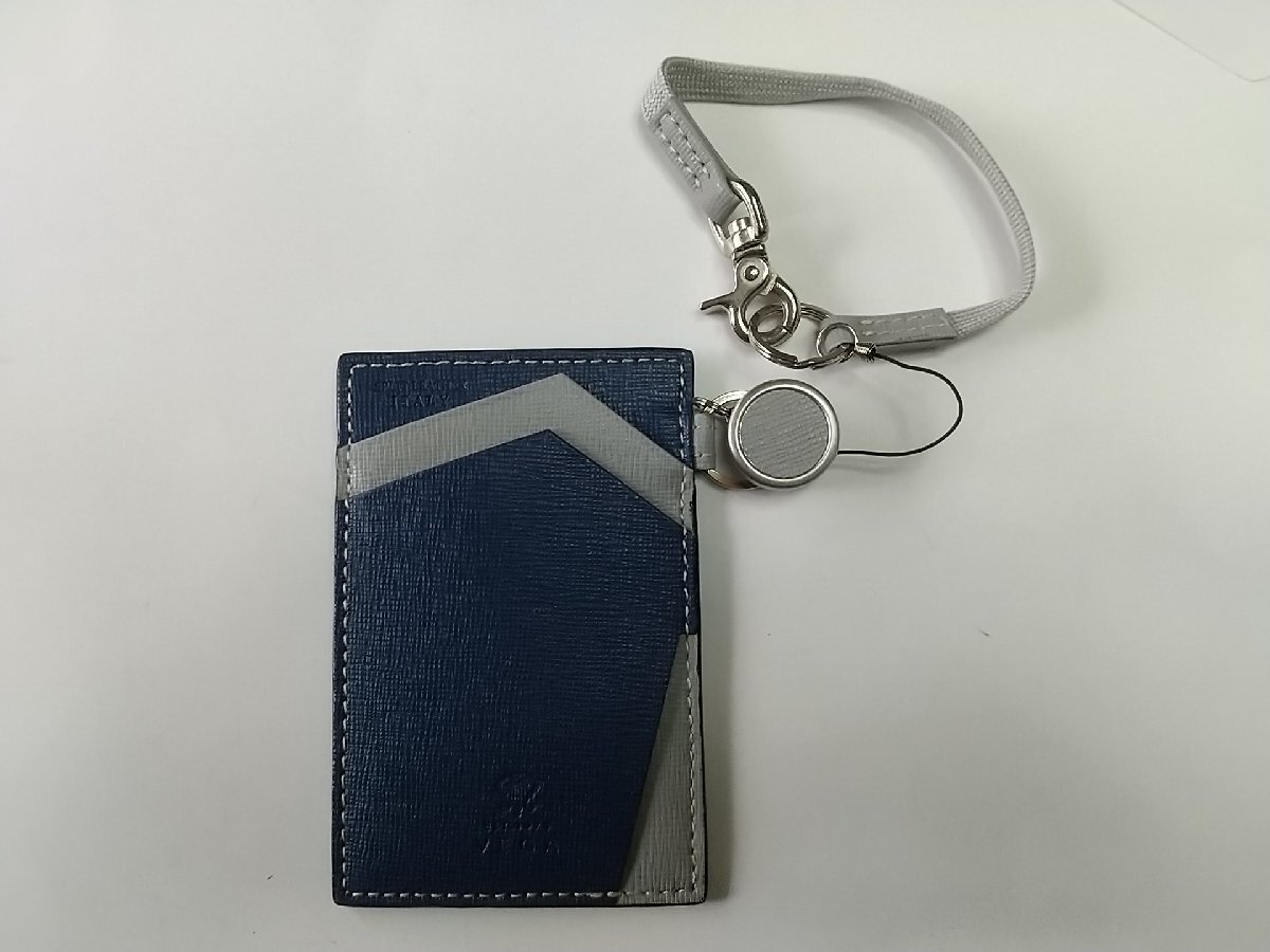 訳ありVEGA 【未使用】定期入れ リール付き ブルー 本革 格安 特価 お買い得 セール 在庫処分