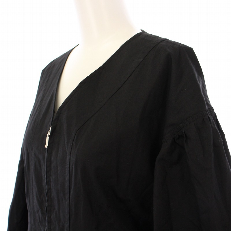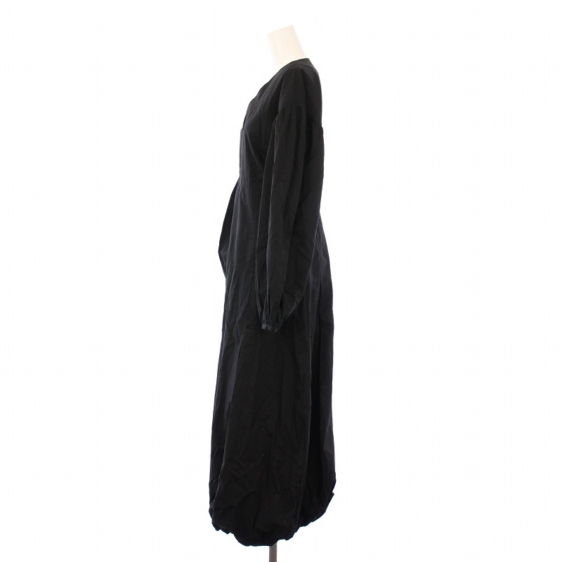 クラネ CLANE 23AW FRONT ZIP BALLOON ONEPIECE フロントジップバルーンワンピース ミモレ ロング 長袖 Vネック 1 黒